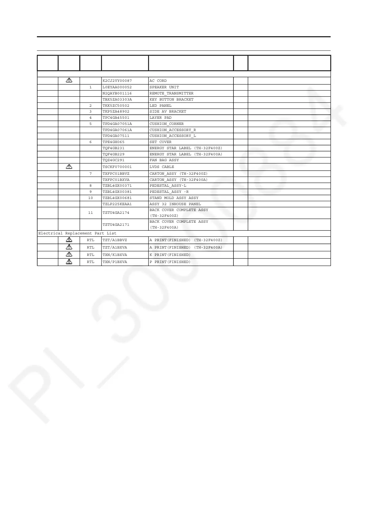 Model No. : TH-32F400A TH-32F400Z Parts List