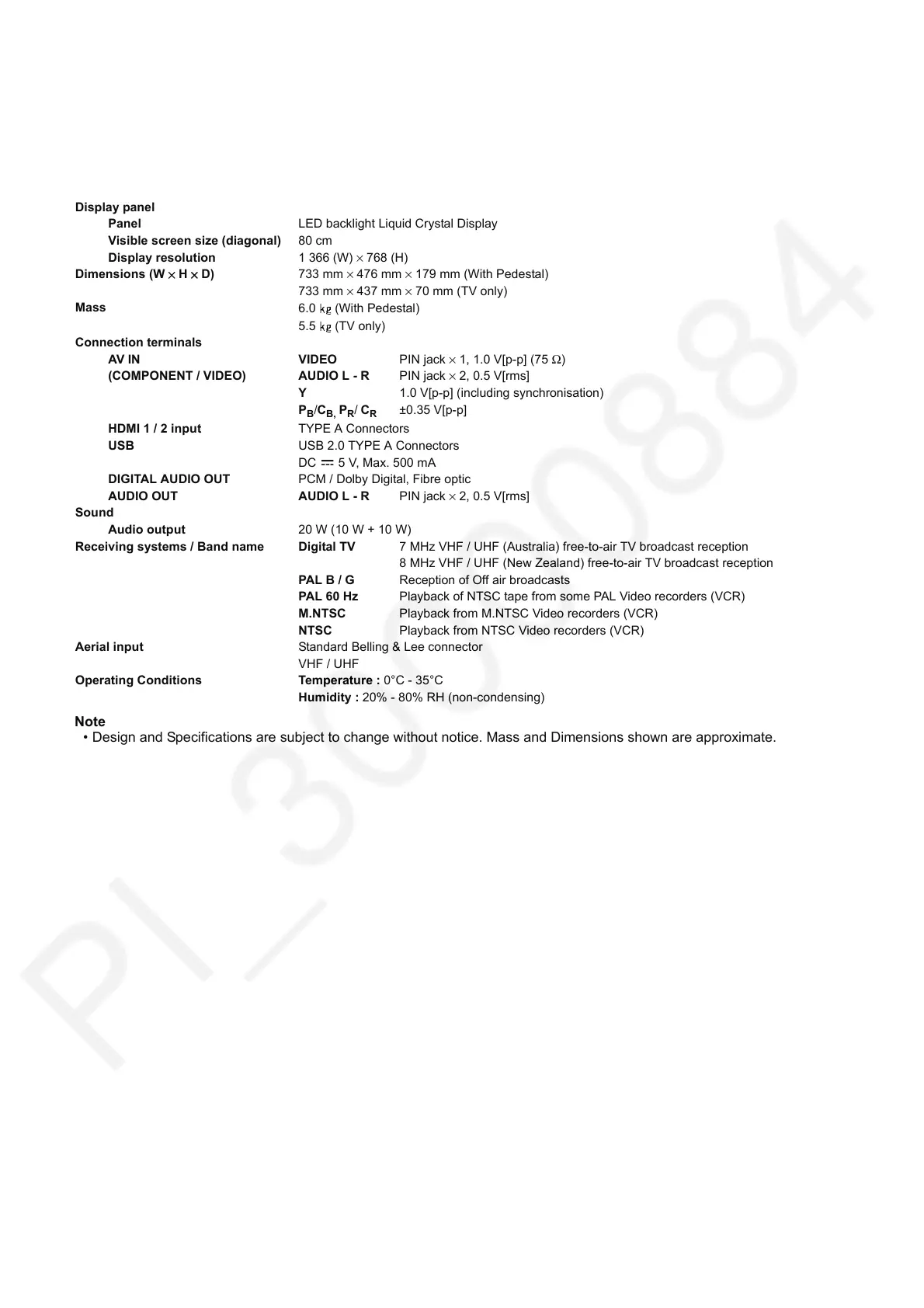 Dimensions (W × H × D) 733 mm × 476 mm × 179 mm (With Pedestal)