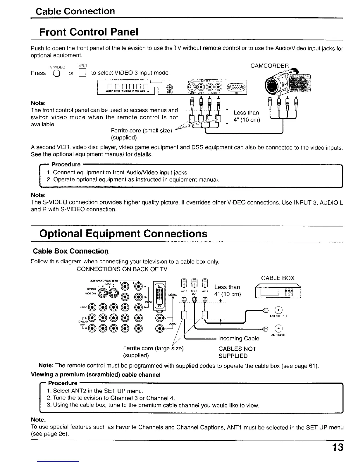 The S-VIDEO connection provides higher quality picture. It overrides other VIDEO connections. Use INPUT 3, AUDIO L