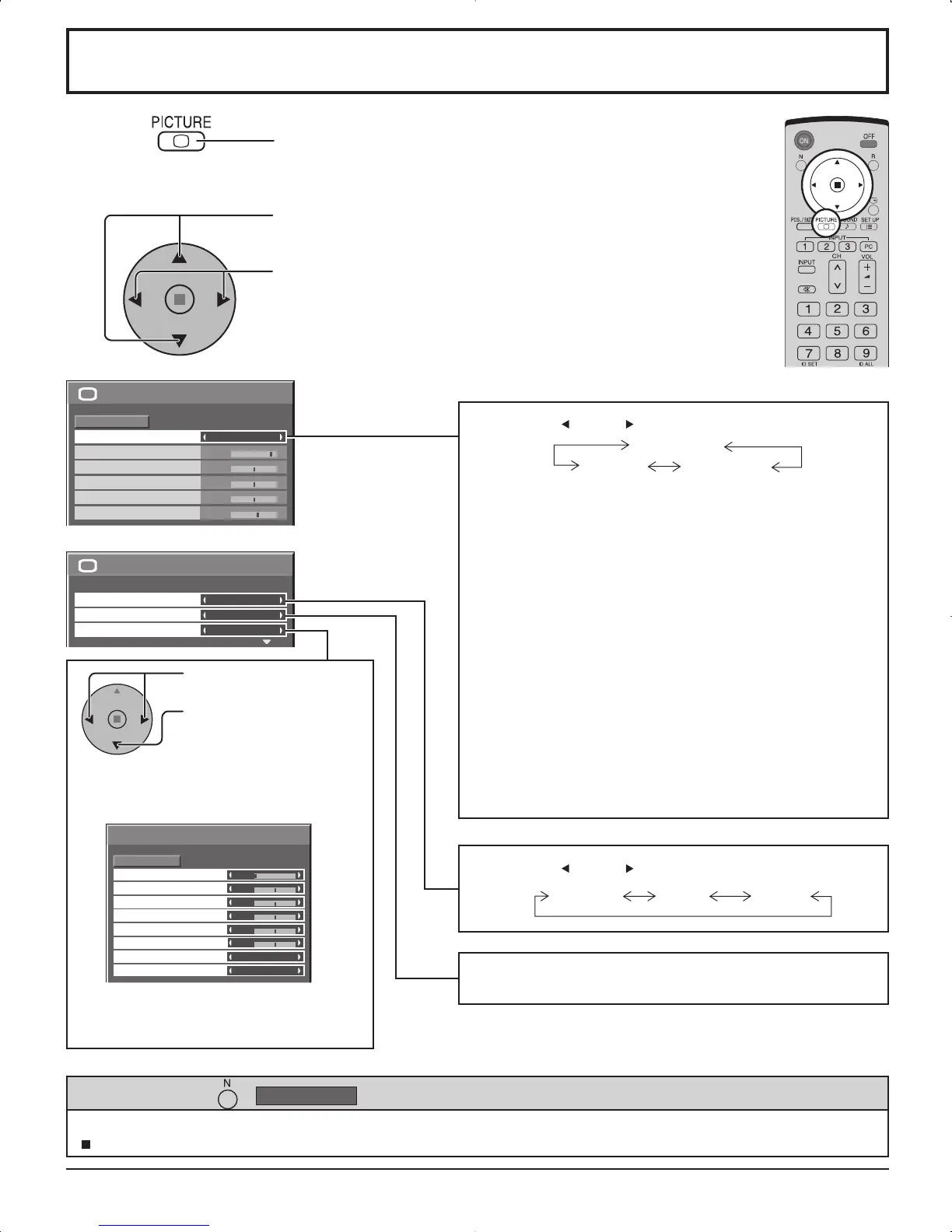 While the “PICTURE” menu is displayed, if either the N button on the remote control is pressed at any time or the ACTION