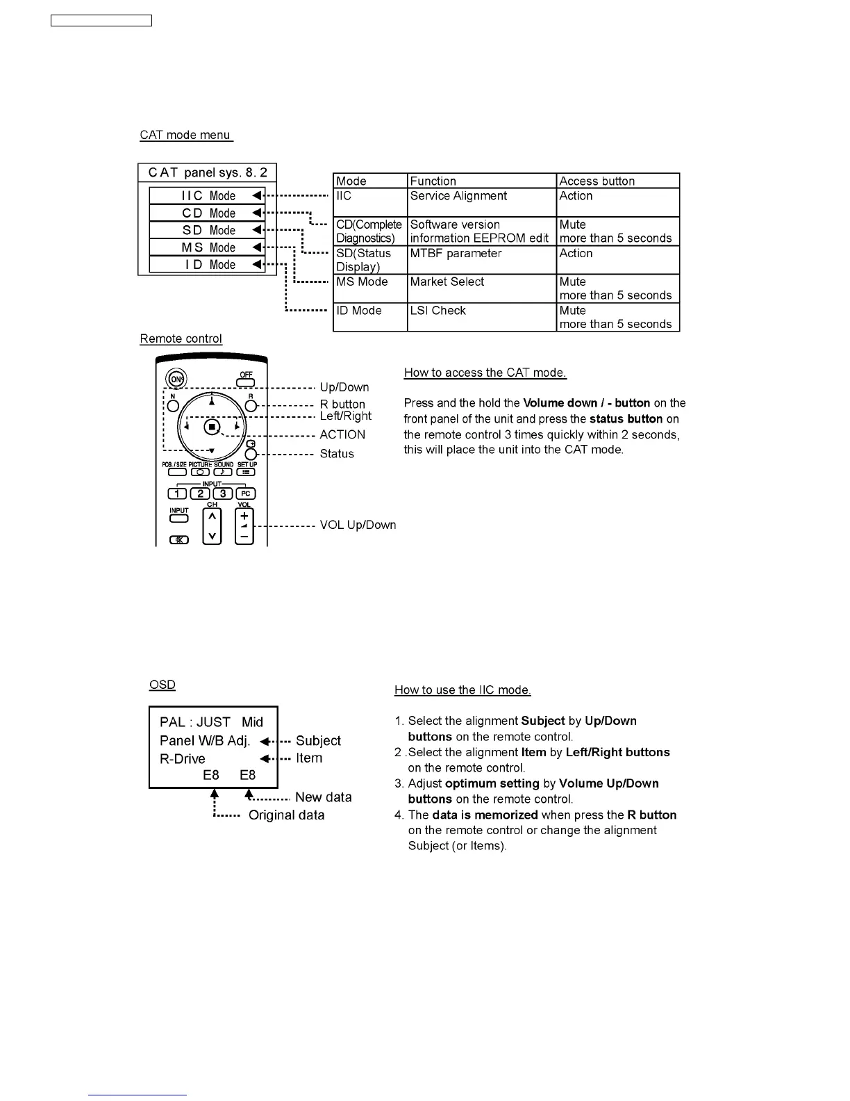 Select the IIC mode by Up/Down button on the remote control at the front page of CAT mode and then press the Action button