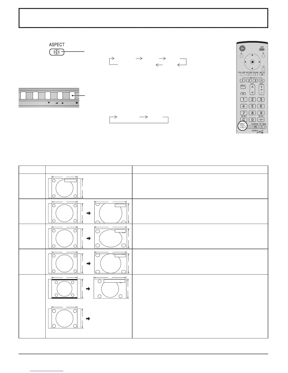 The aspect mode changes each time the ENTER button