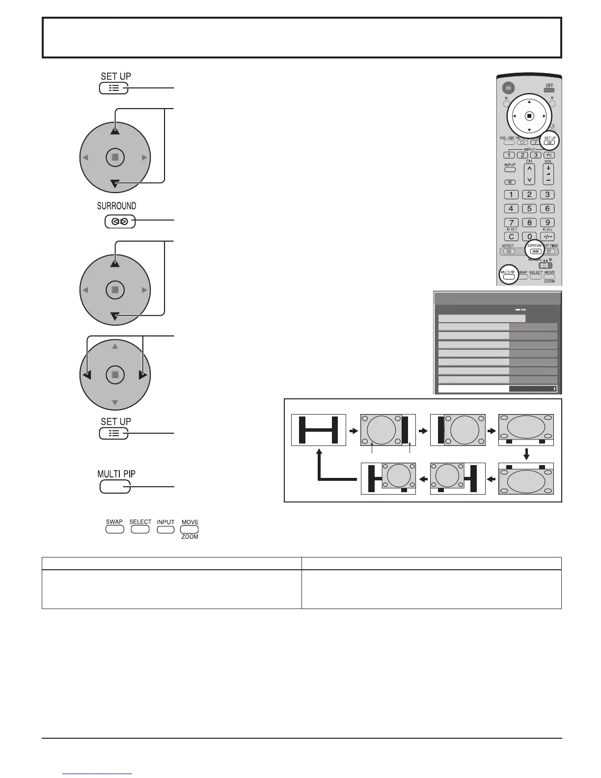 • If “Input lock” in Options menu is set to other than “Off”, MULTI PIP function isn’t available.