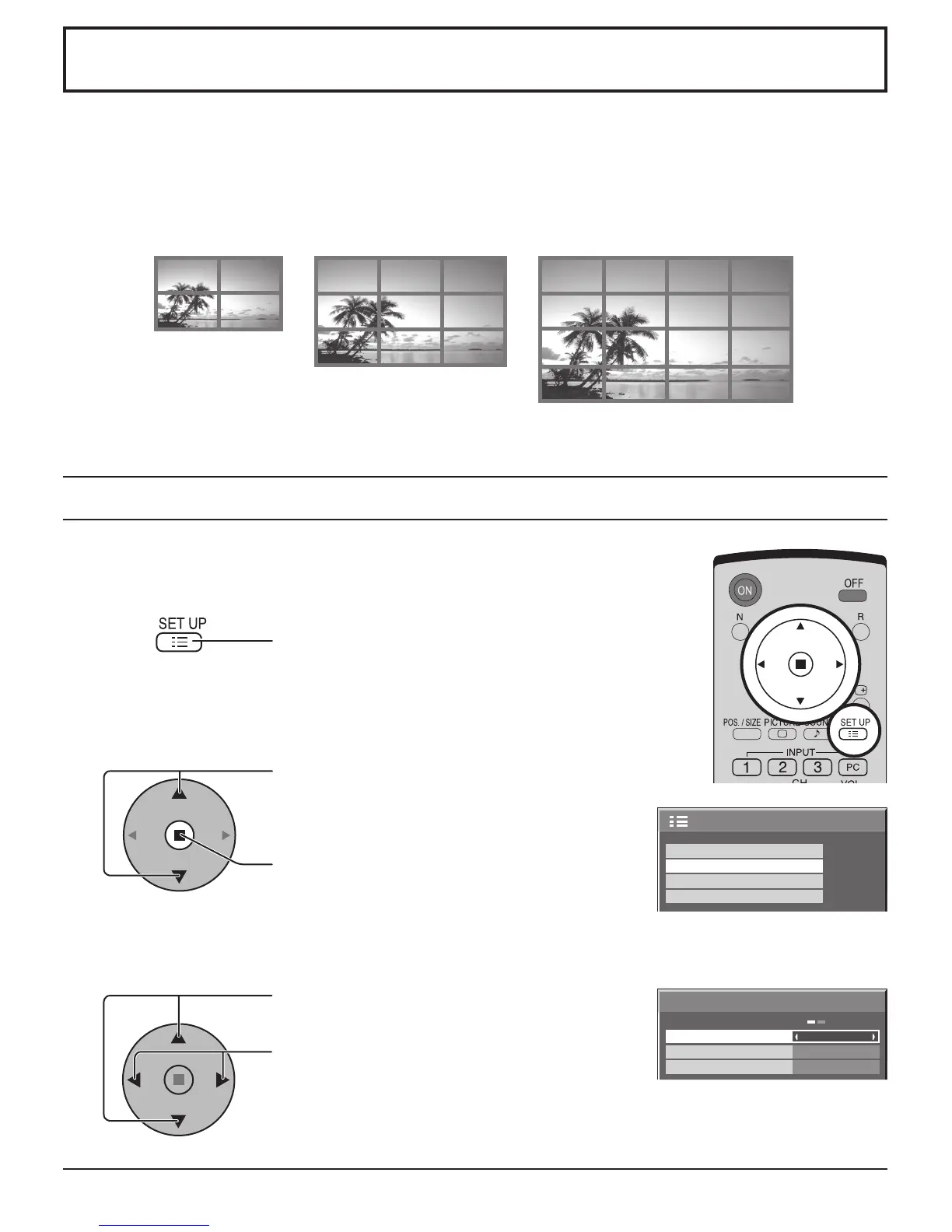 Alineando pantallas de plasma en grupos de 4, 9 ó 16 como se muestra en la ilustración de abajo se puede visualizar