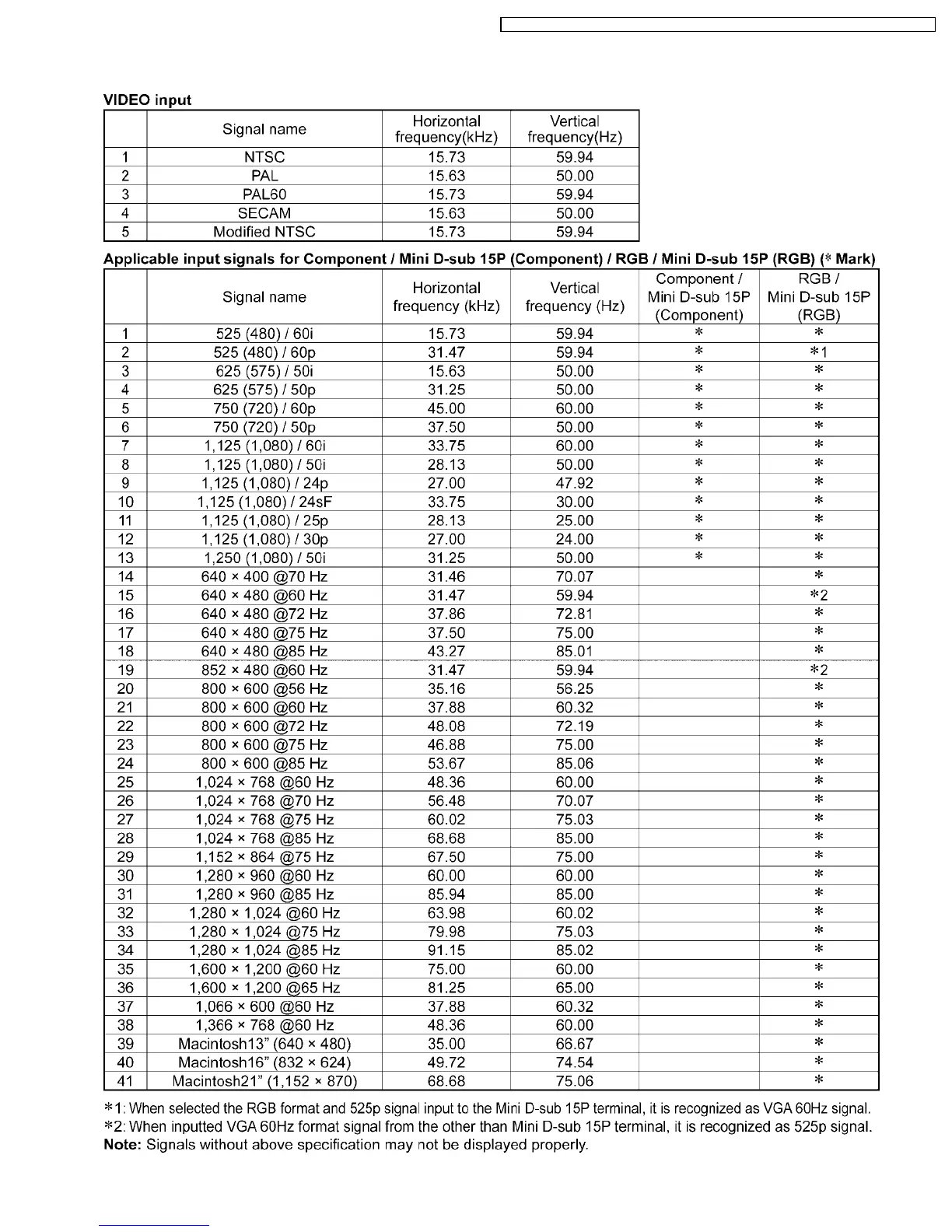 Panasonic TH-37PHD8GK - 1 Applicable Signals