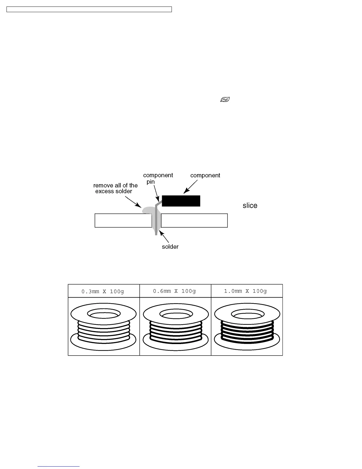 After applying PbF solder to double layered boards, please check the component side for excess solder which may flow onto