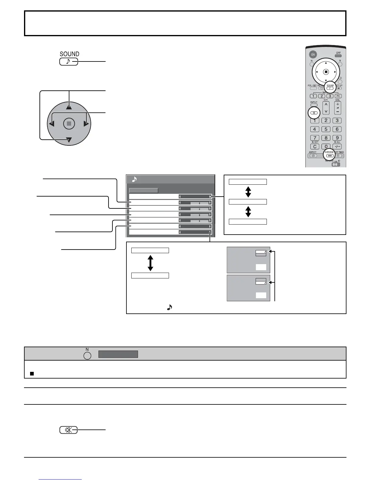 While the “SOUND” menu is displayed, if either the N button on the remote control is pressed at any time or the ACTION