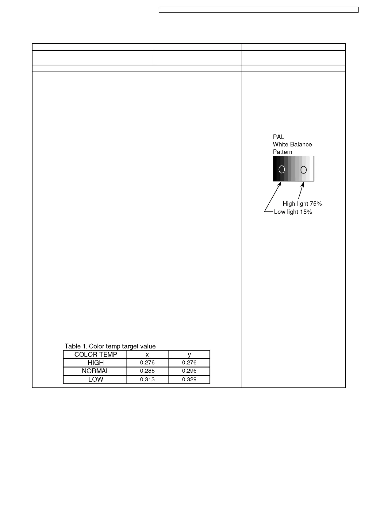 1. Display the white balance pattern.