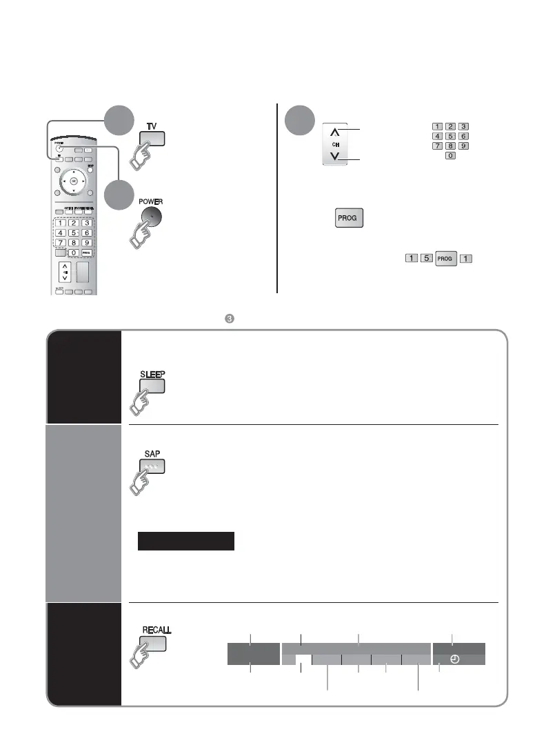 • Each press of SAP will change the audio mode. (Stereo/SAP/Mono)