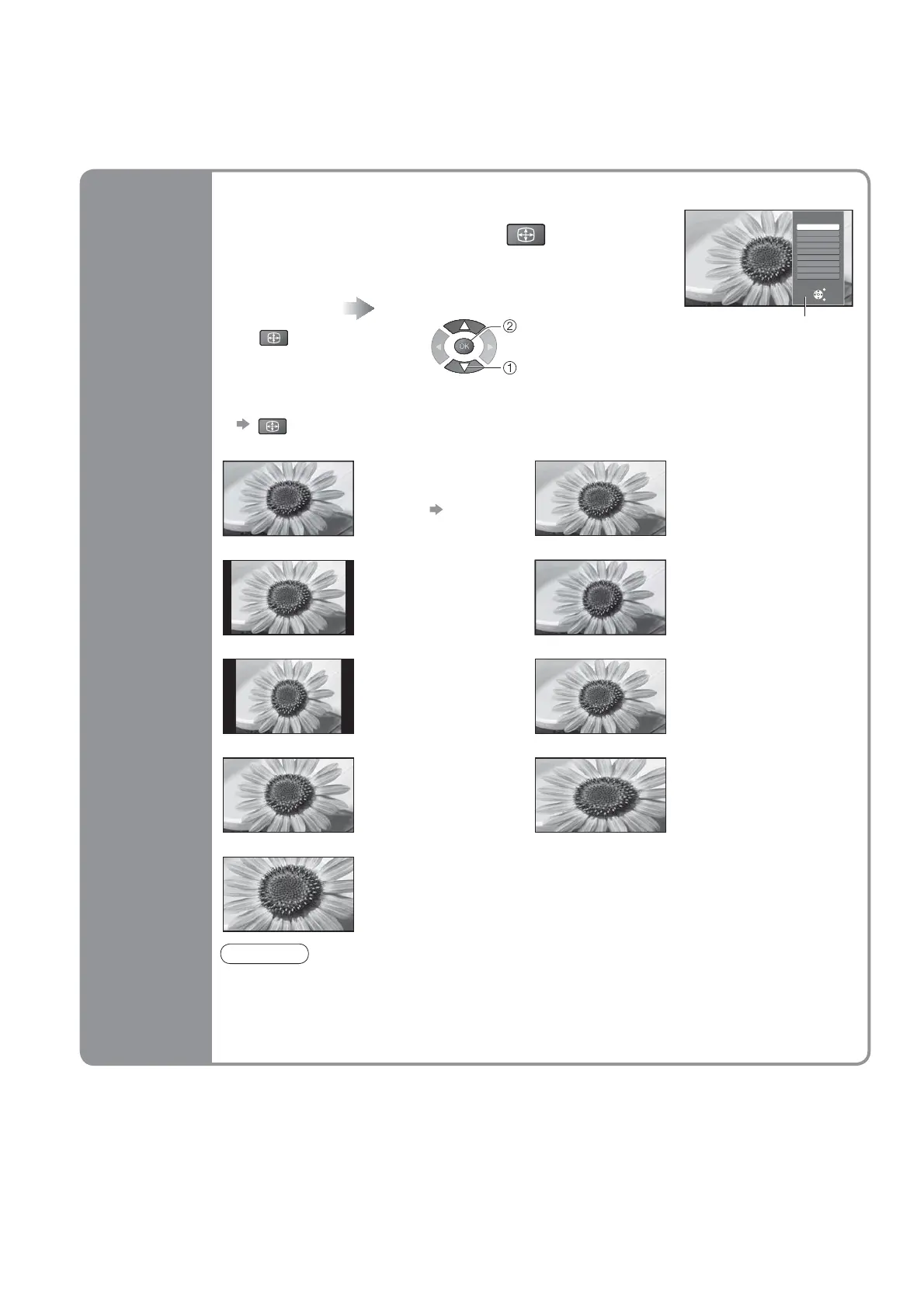 Aspect mode can be memorized separately for SD (Standard defi nition) and HD (High