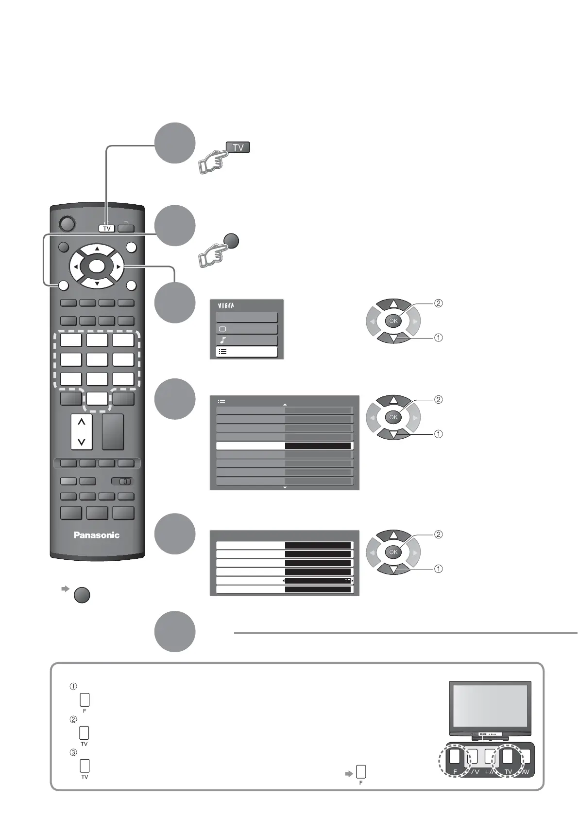 ŶFor Auto Setup, using the buttons on the front of the TV (p. 8)