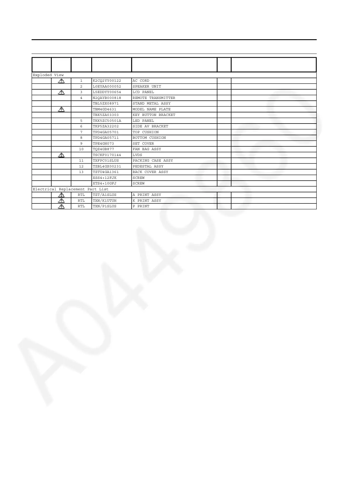 Model No. : TH-40A400S Parts List