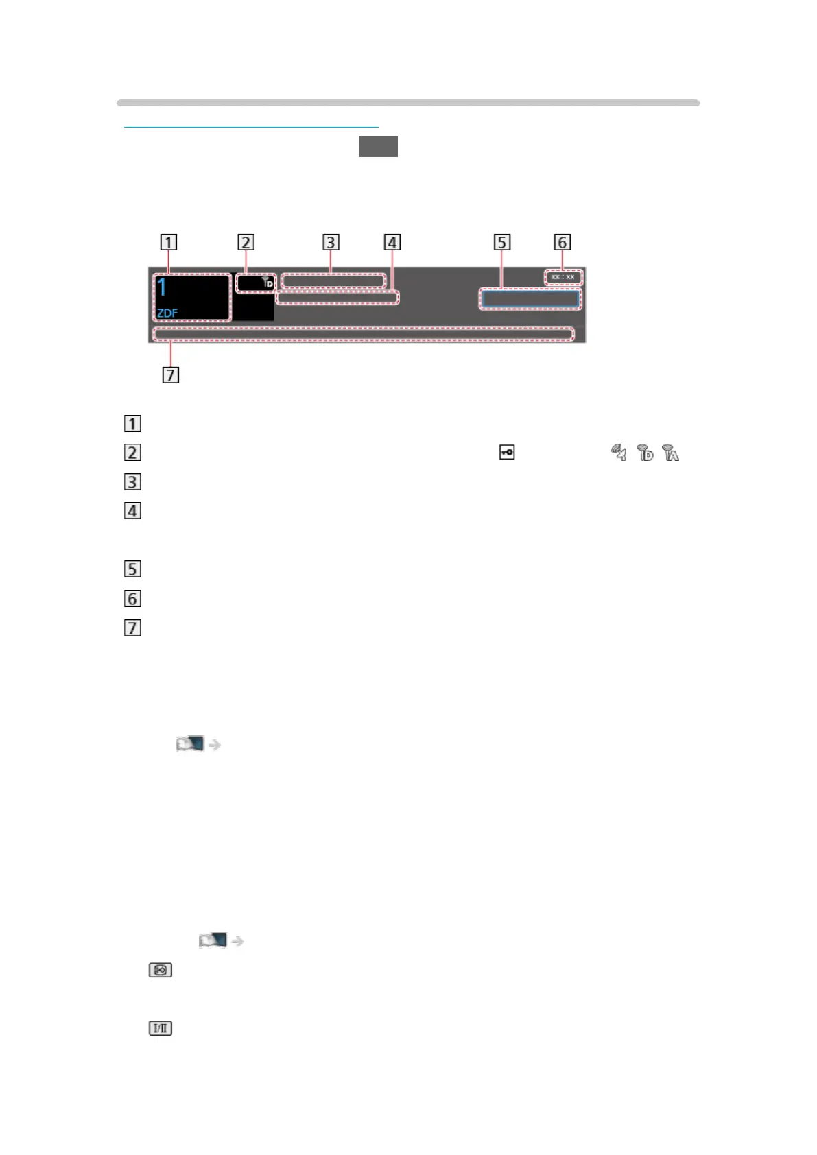 Channel type (Radio, etc.) / Encrypted channel ( ) / TV mode ( , , )
