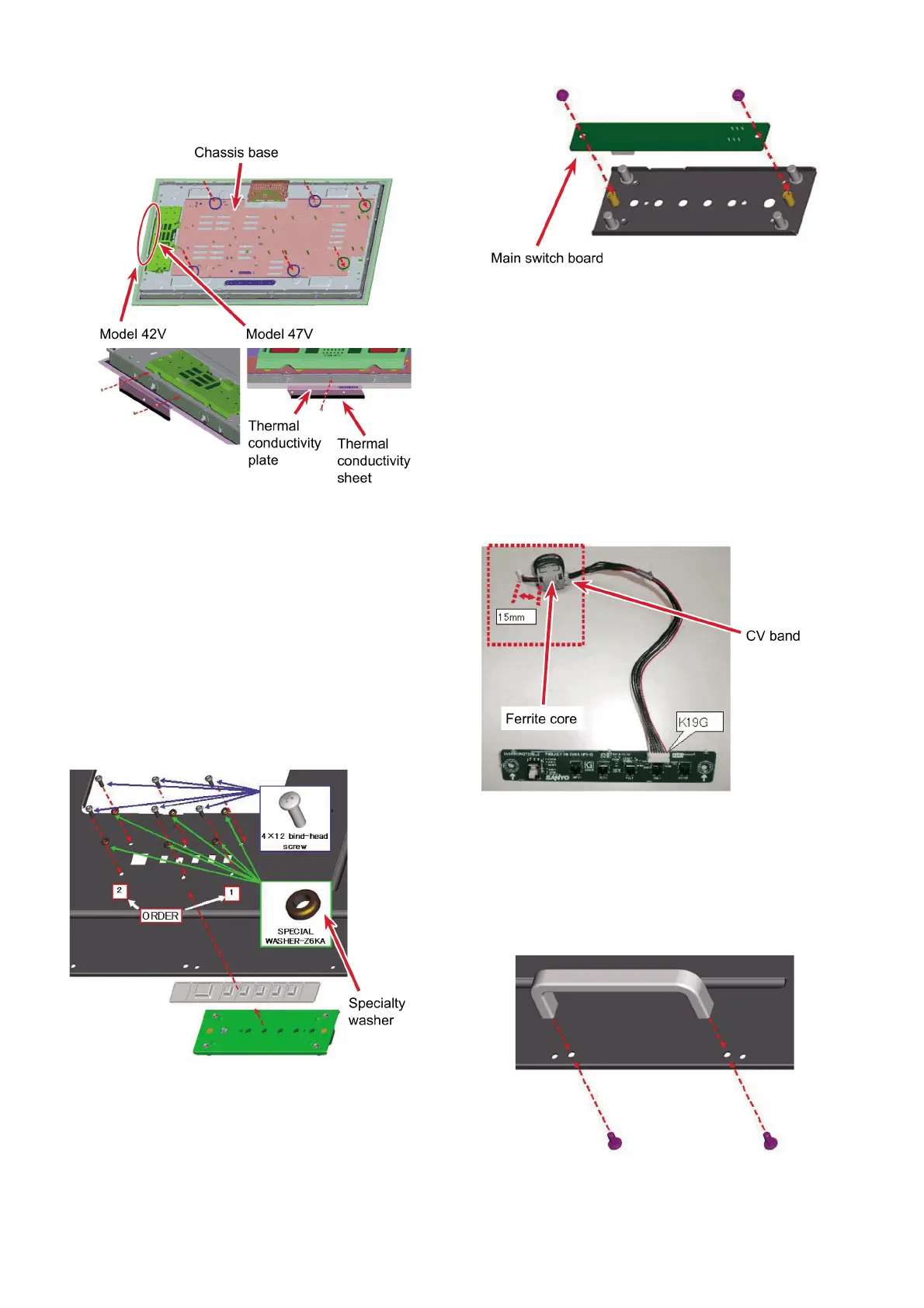 5. Undo the screws (Model 47V: 1; Model 42V: 2), then