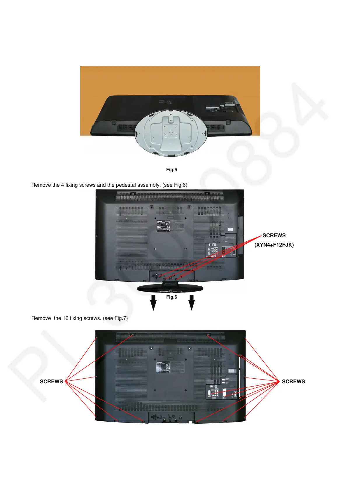 Remove the 4 fixing screws and the pedestal assembly. (see Fig.6)