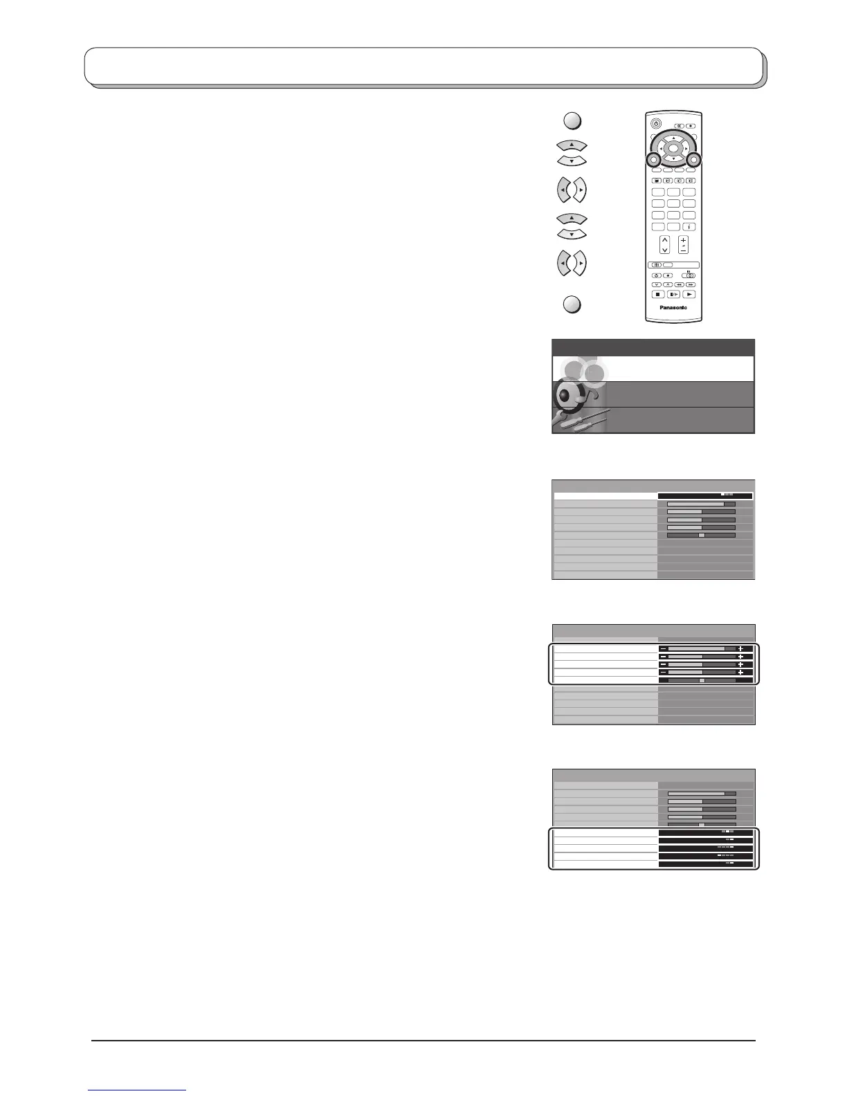 Colour, Sharpness, Tint (in NTSC only), Colour balance,