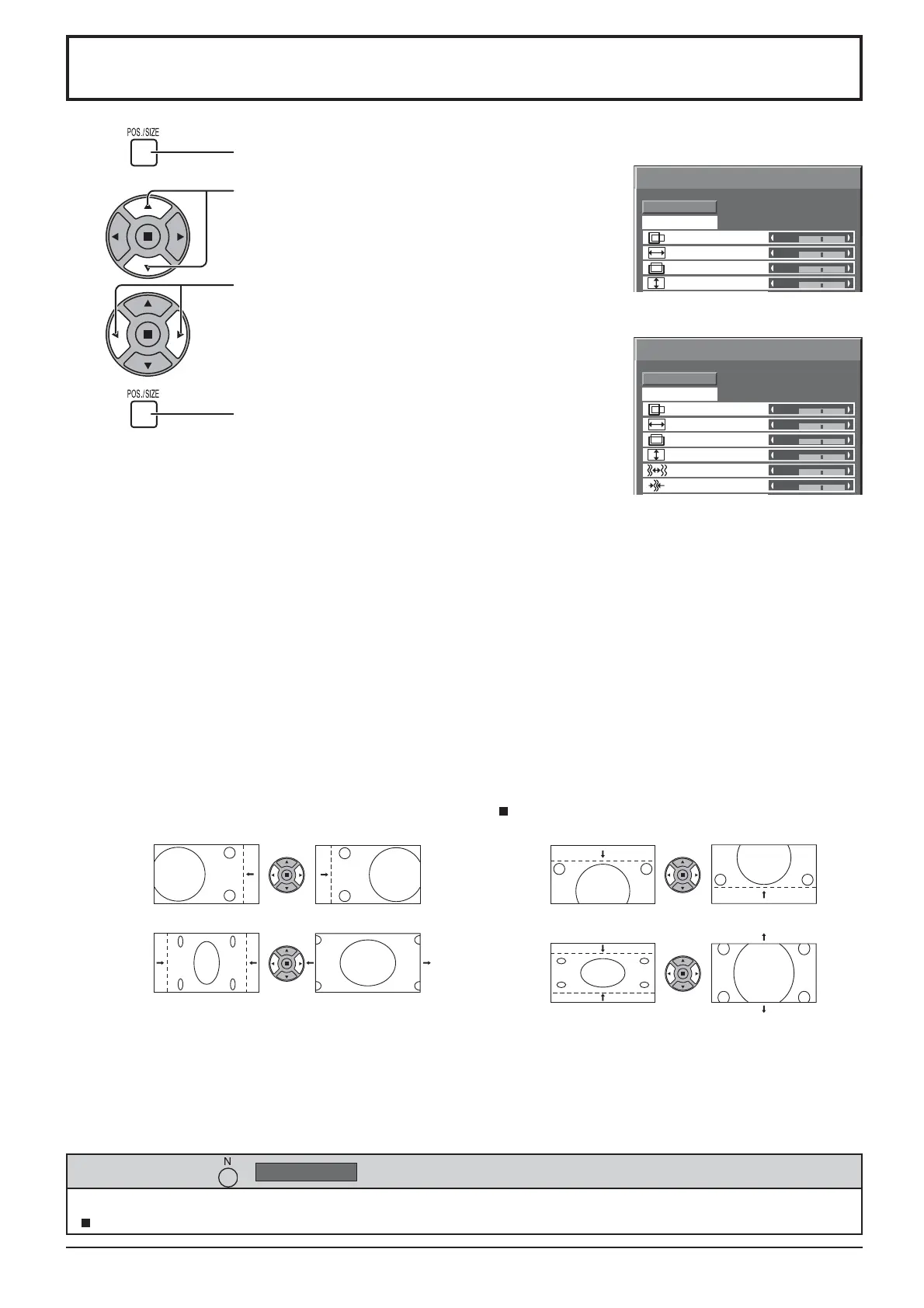 While the Pos. / Size display is active, if either the N button on the remote control is pressed at any time or the ACTION