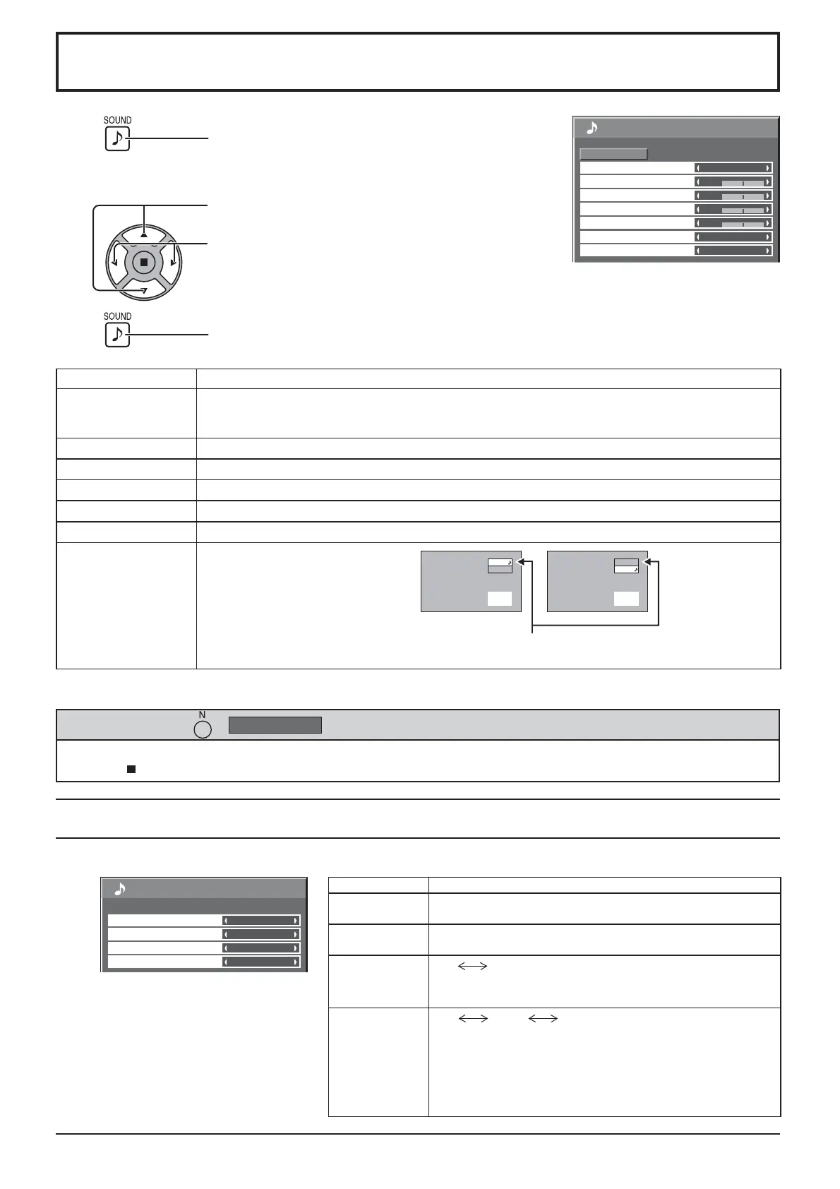 While the “Sound” menu is displayed, if either the N button on the remote control is pressed at any time or the