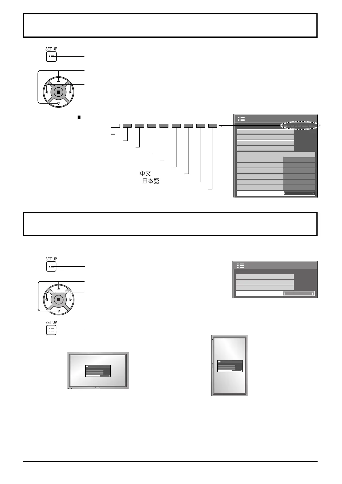 Sets the fan control and the display style of on-screen menu for vertical installation.