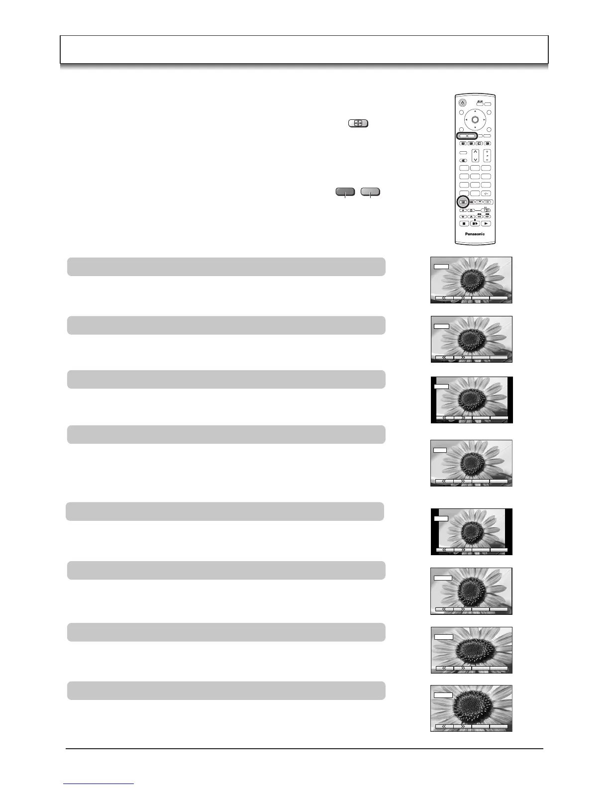 Auto, 16:9, 14:9, Just, 4:3, Zoom1, Zoom2 and Zoom3