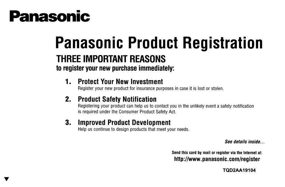 Panasonic TH-42PZ77U - Product Registration Information; Reasons for Product Registration