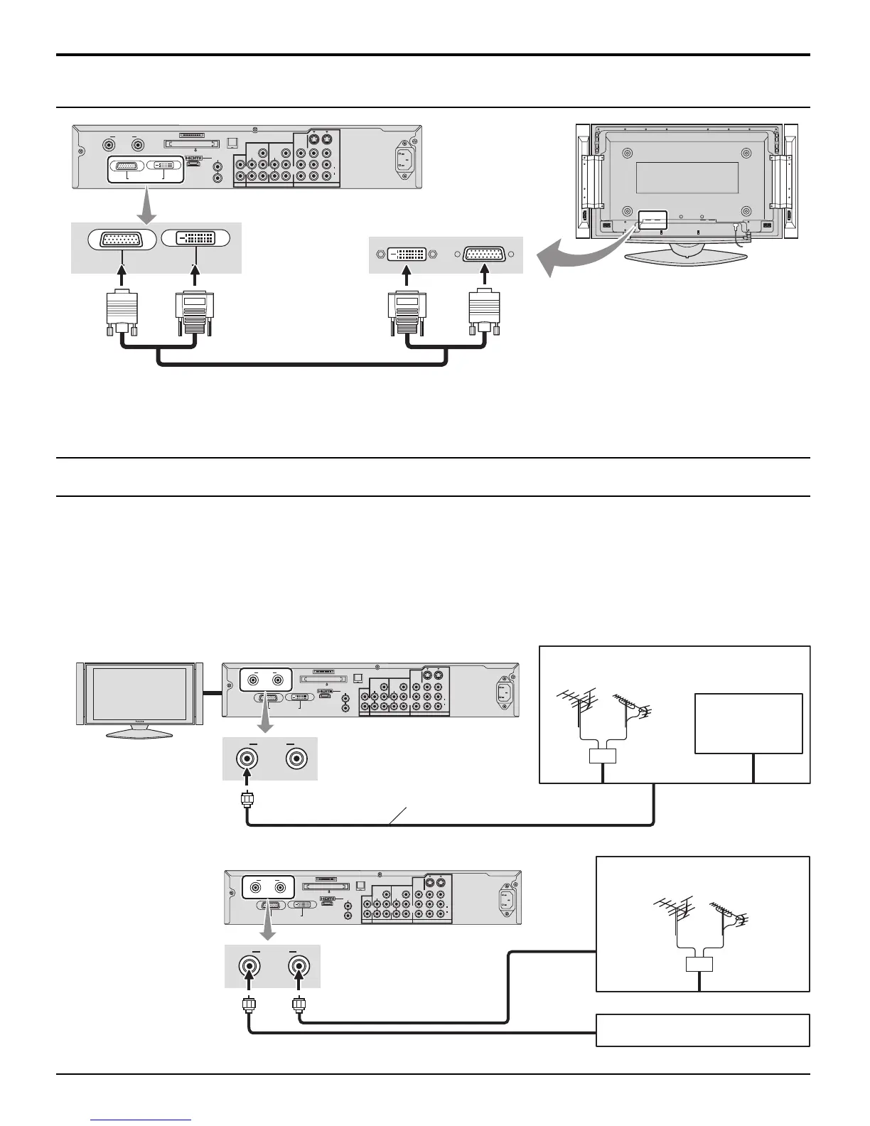 • When you enjoy both the terrestrial TV programs and the cable TV programs, connect the cable TV’s cable to ANTENNA