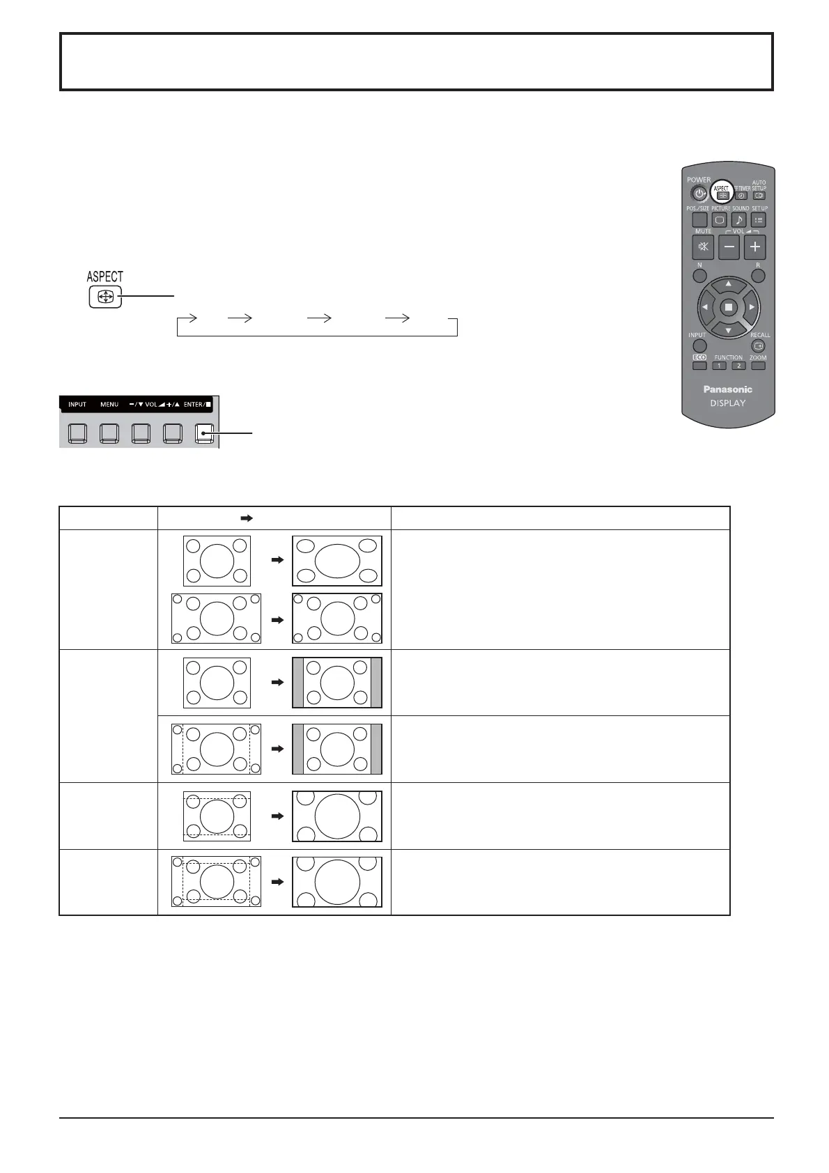 The aspect mode changes each time the ENTER button is pressed.