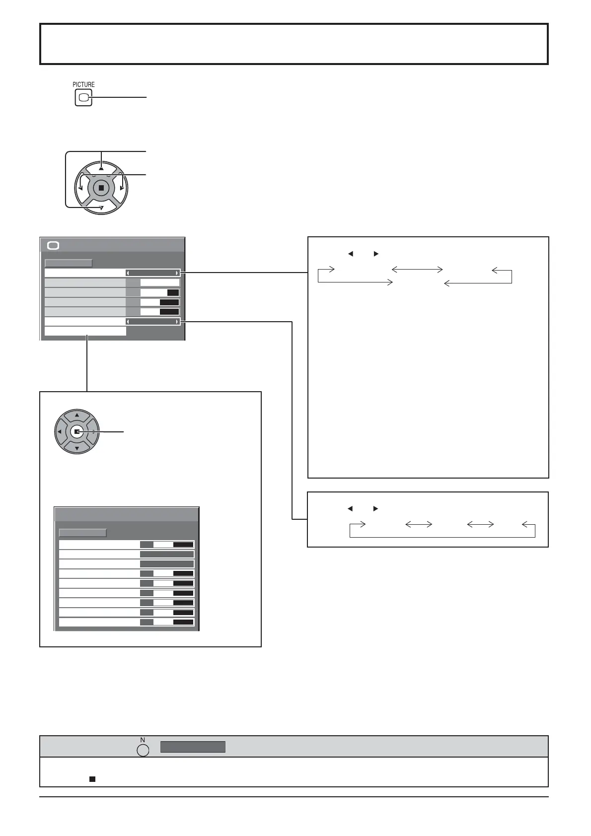 While the “Picture” menu is displayed, if either the N button on the remote control is pressed at any time or the