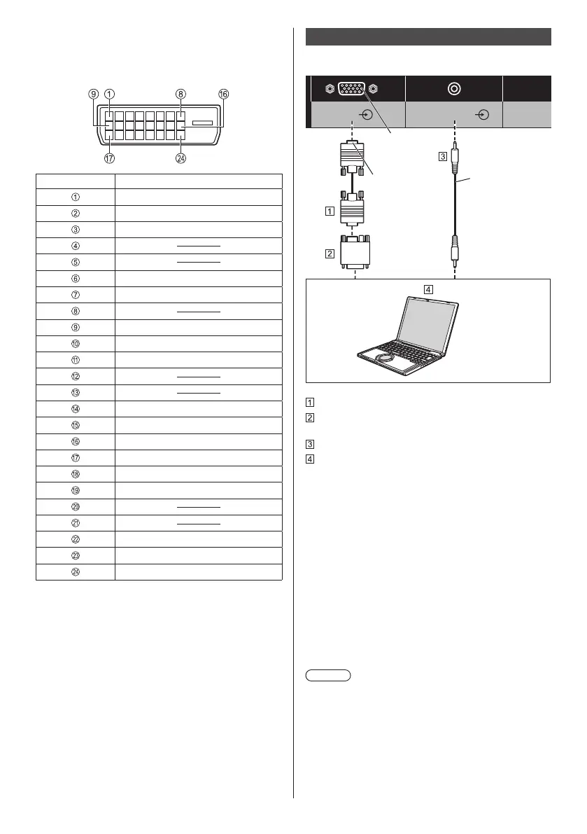 Pin assignments and signal names for DVI-D