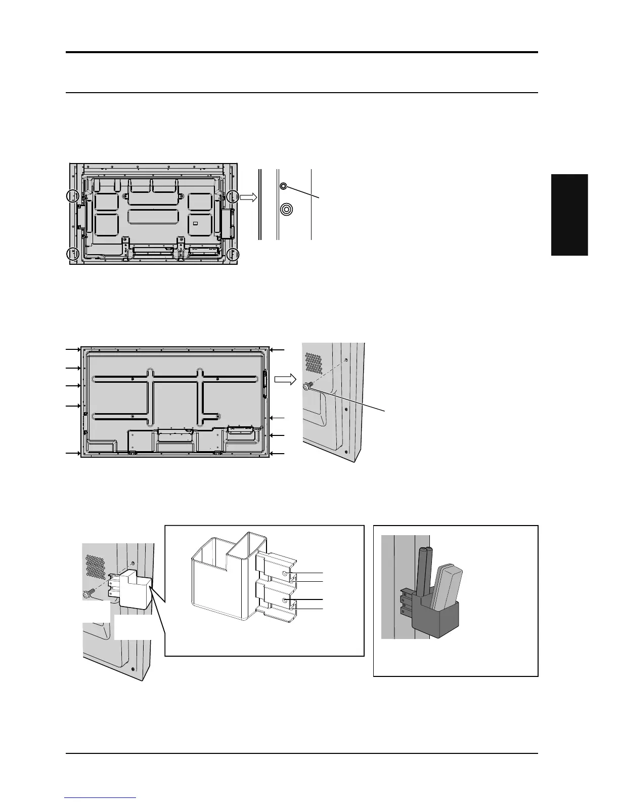 para los tornillos, en la parte trasera de la pantalla.