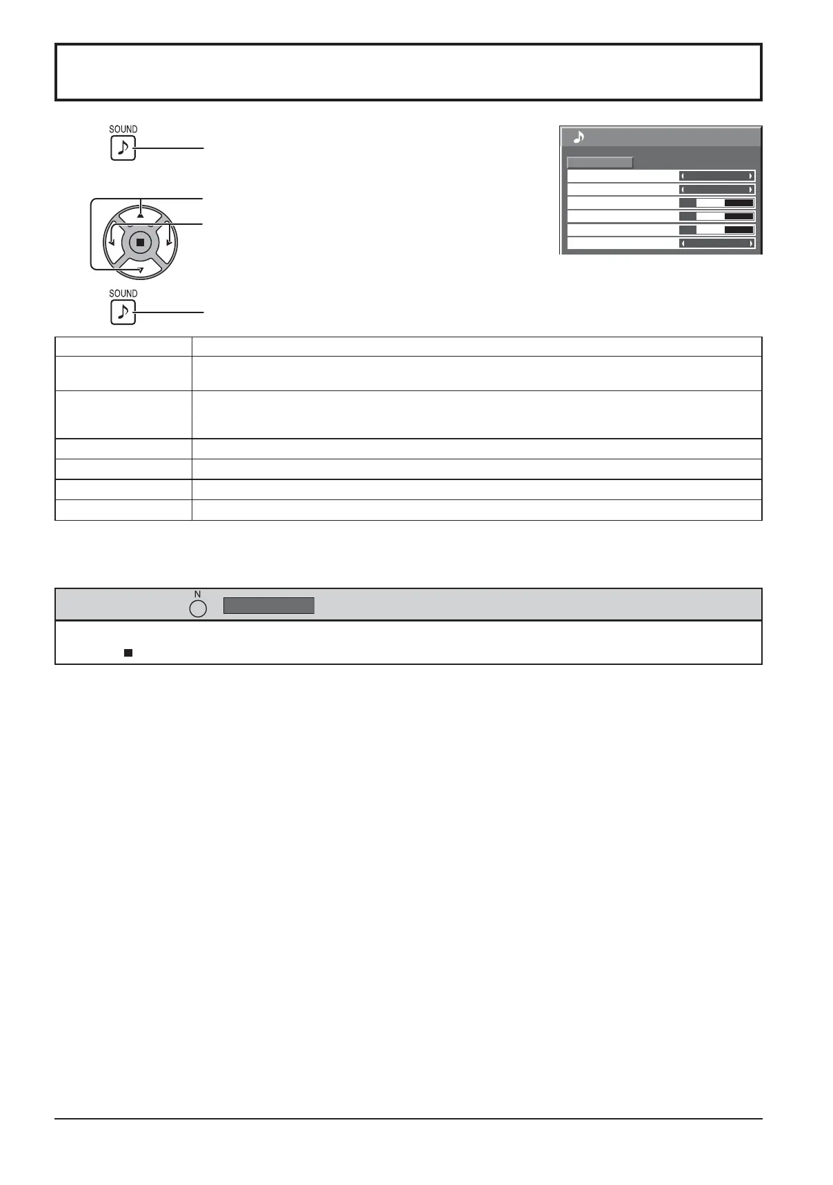 While the “Sound” menu is displayed, if either the N button on the remote control is pressed at any time or the