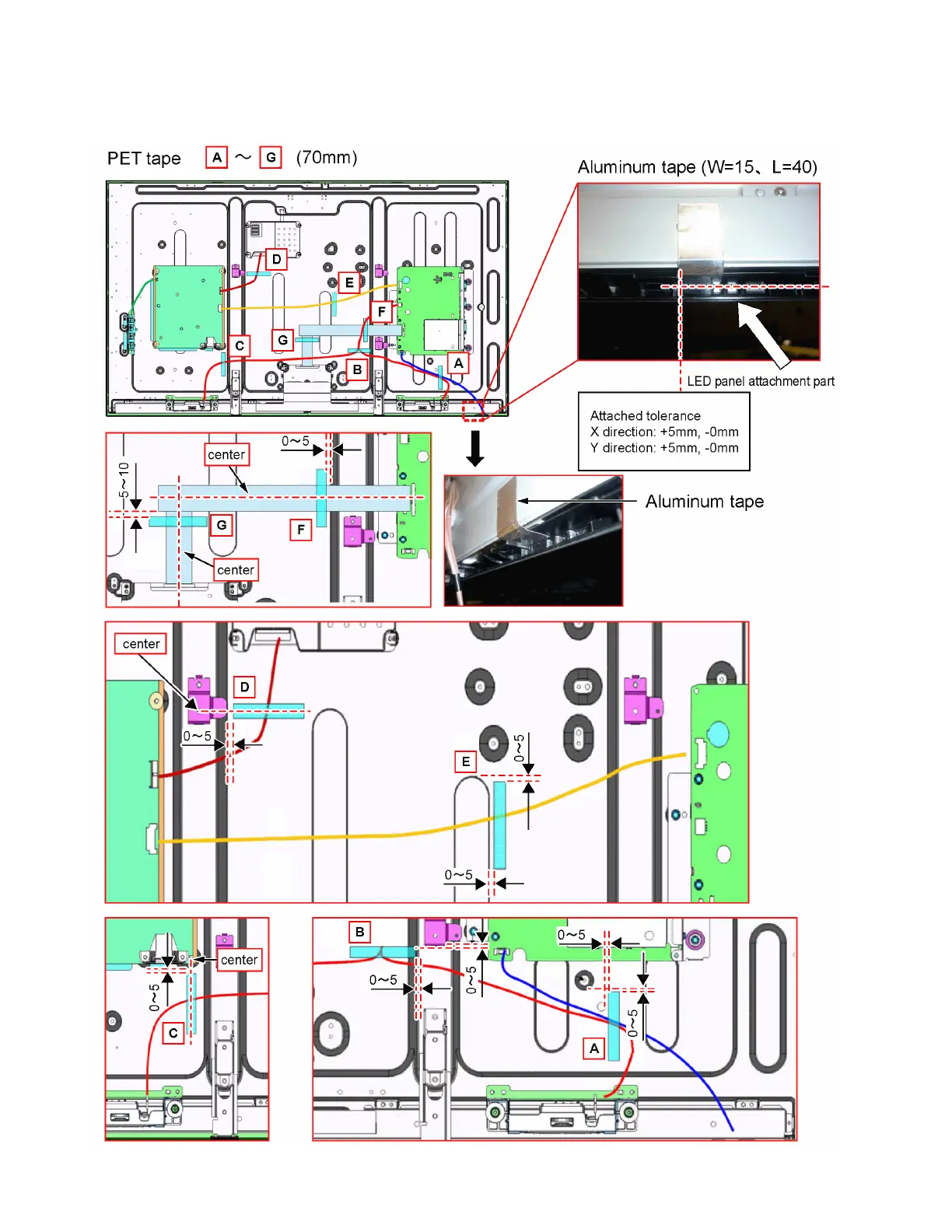 Please stick the tapes according to the sticking position of the LCD Panel Assy for repair after connecting the LVDS Cable.