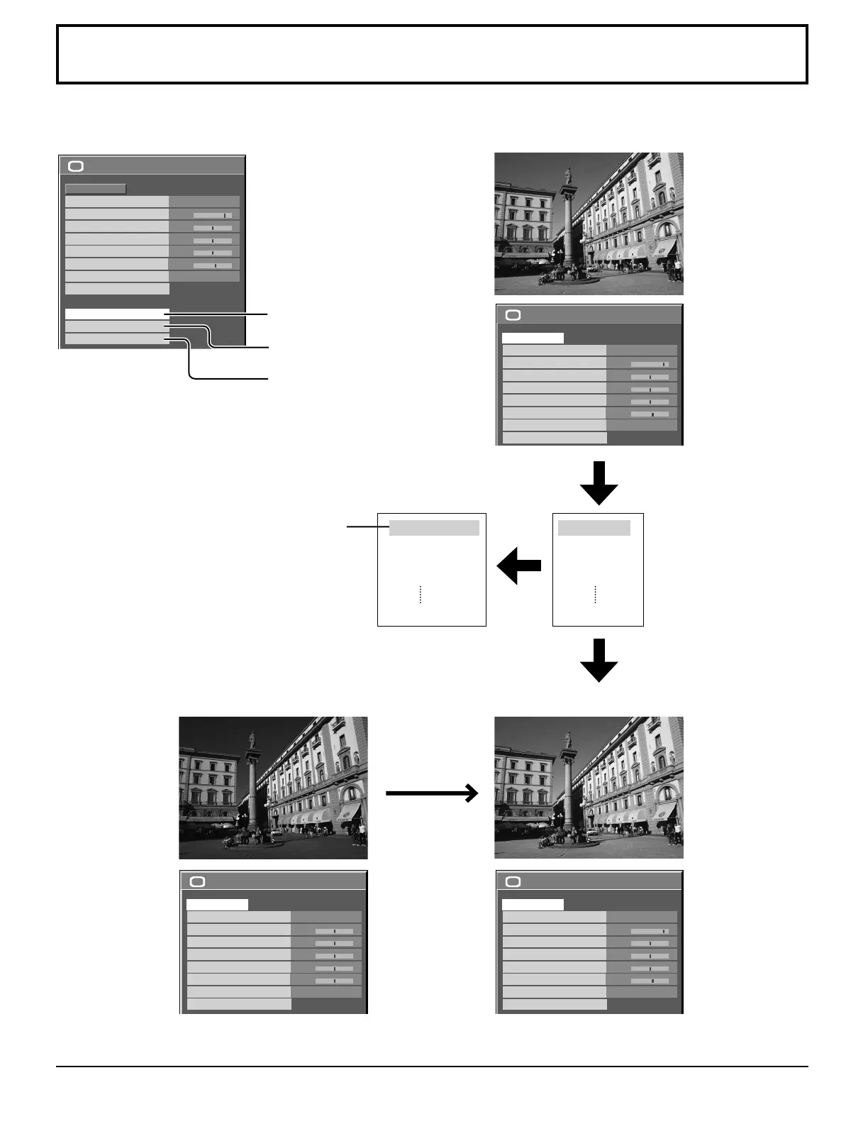 Up to 8 combinations of picture adjustment values (in the PICTURE menu and ADVANCED SETTINGS) can be stored in