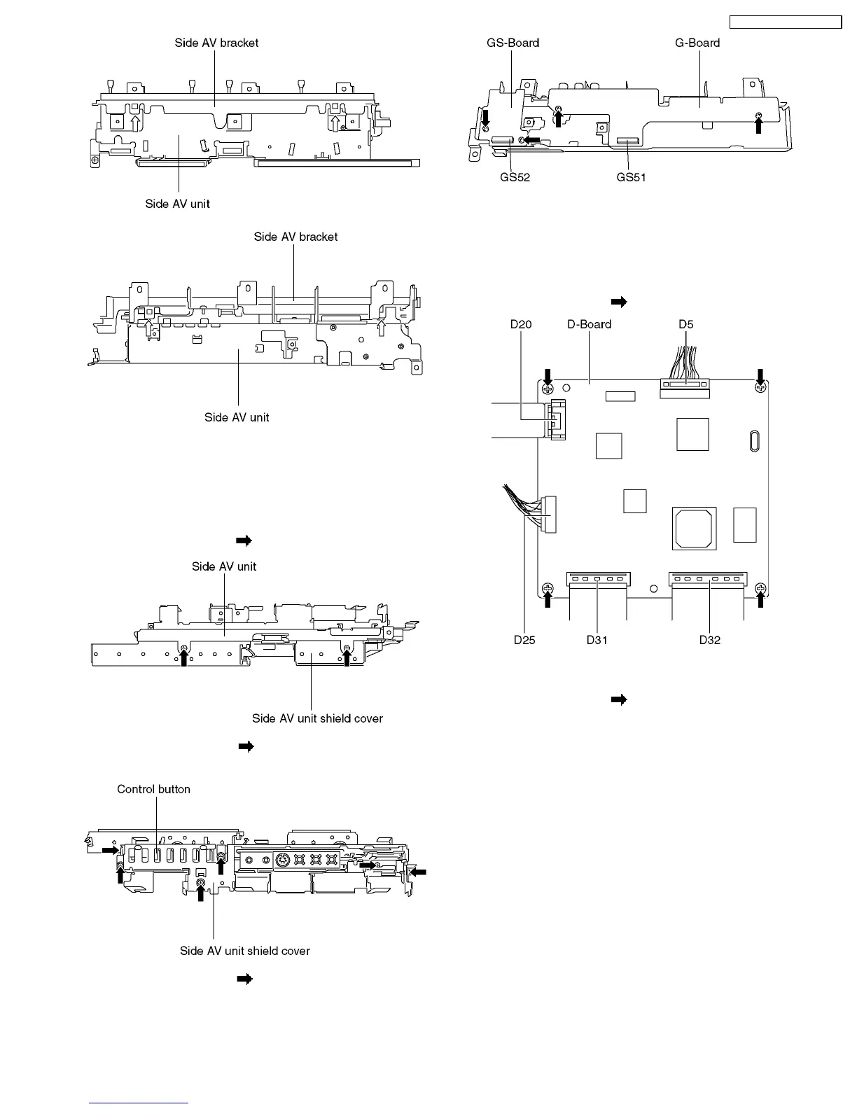 1. Remove the side AV unit and the side AV bracket. (See