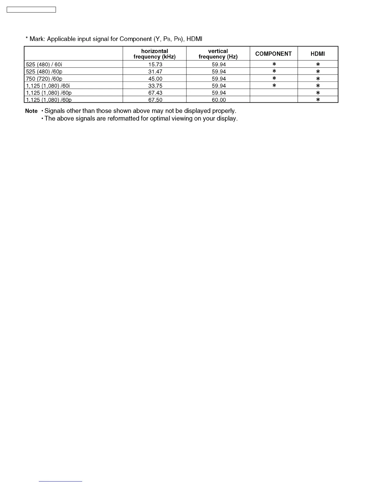 Panasonic TH-50PC77U - 1 Applicable signals