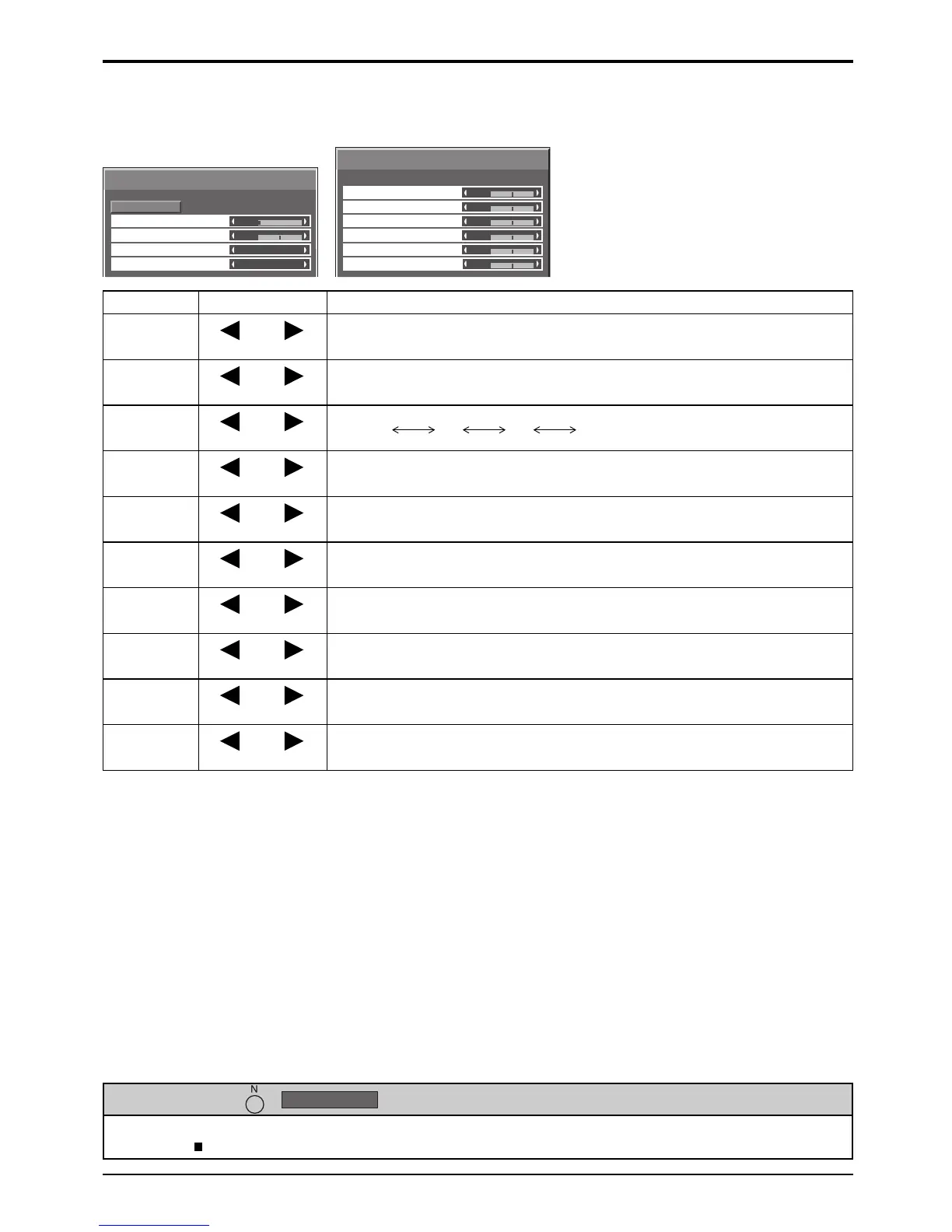 the ACTION ( ) button is pressed during “Normalise”, then all adjustment values are returned to the factory settings.