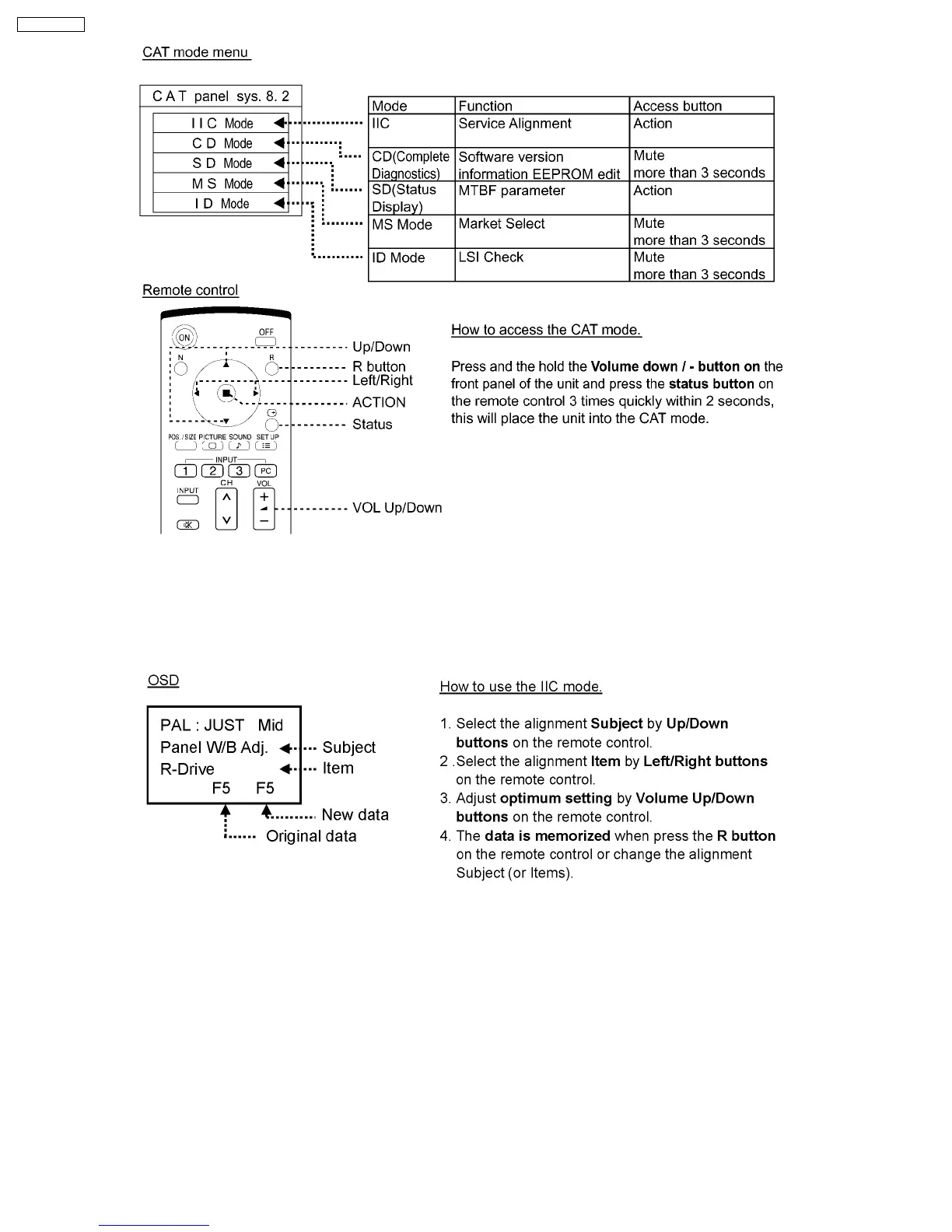Select the IIC mode by Up/Down button on the remote control at the front page of CAT mode and then press the Action button