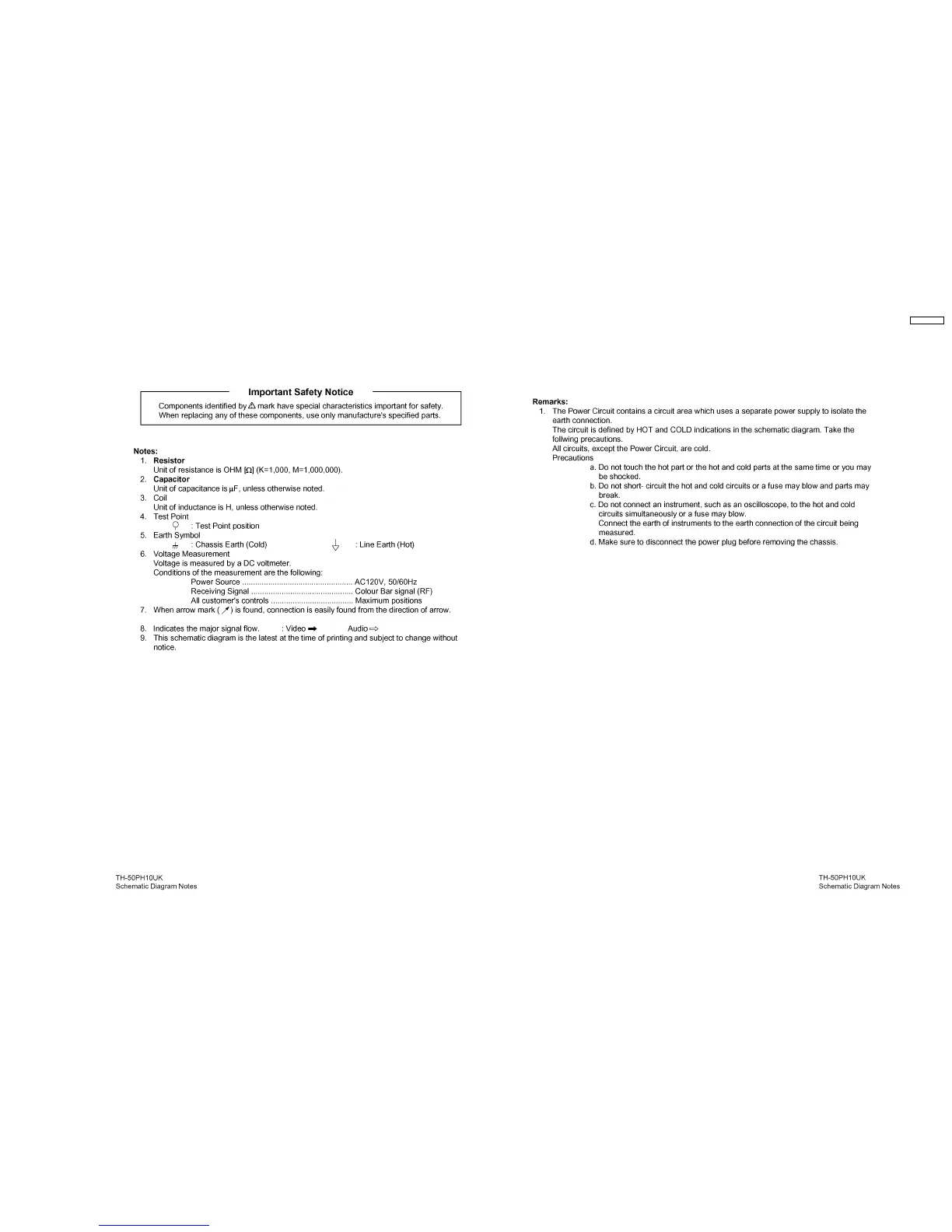 Panasonic th-50ph10uk - 14 Schematic and Block Diagram; Schematic Diagram Notes