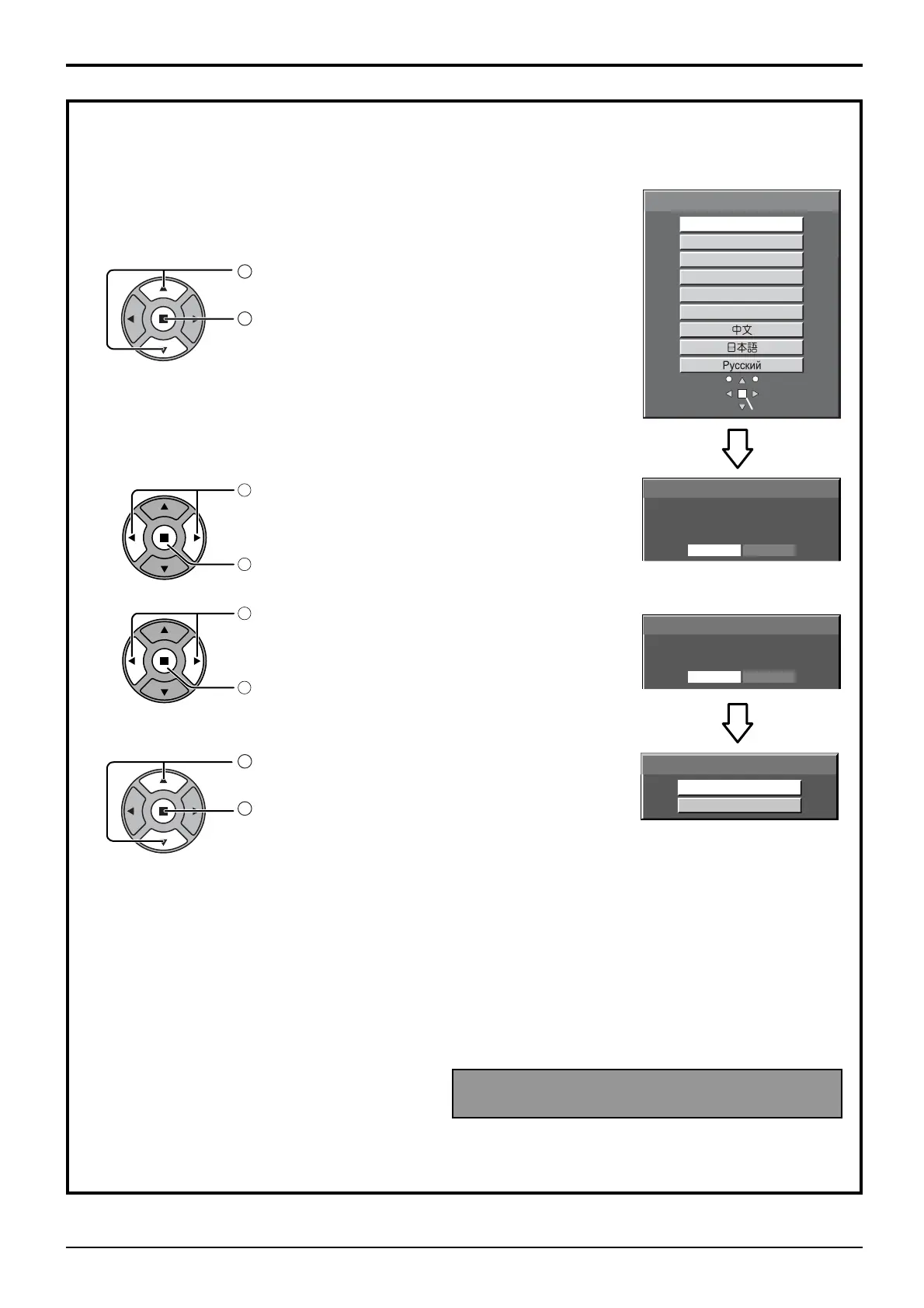 • Once the items are set, the screens won't be displayed when switching on the unit next time.