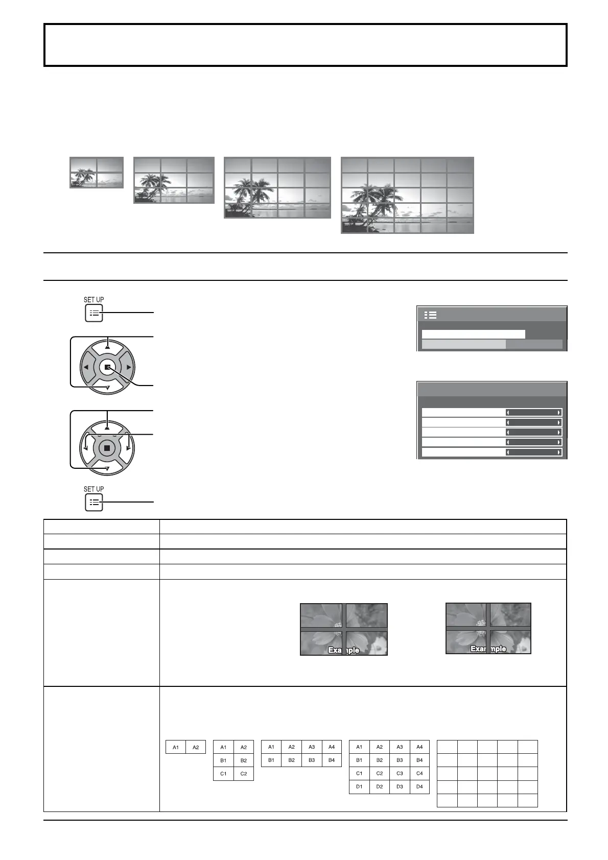 MULTI DISPLAY Setup Select “On” or “Off”.