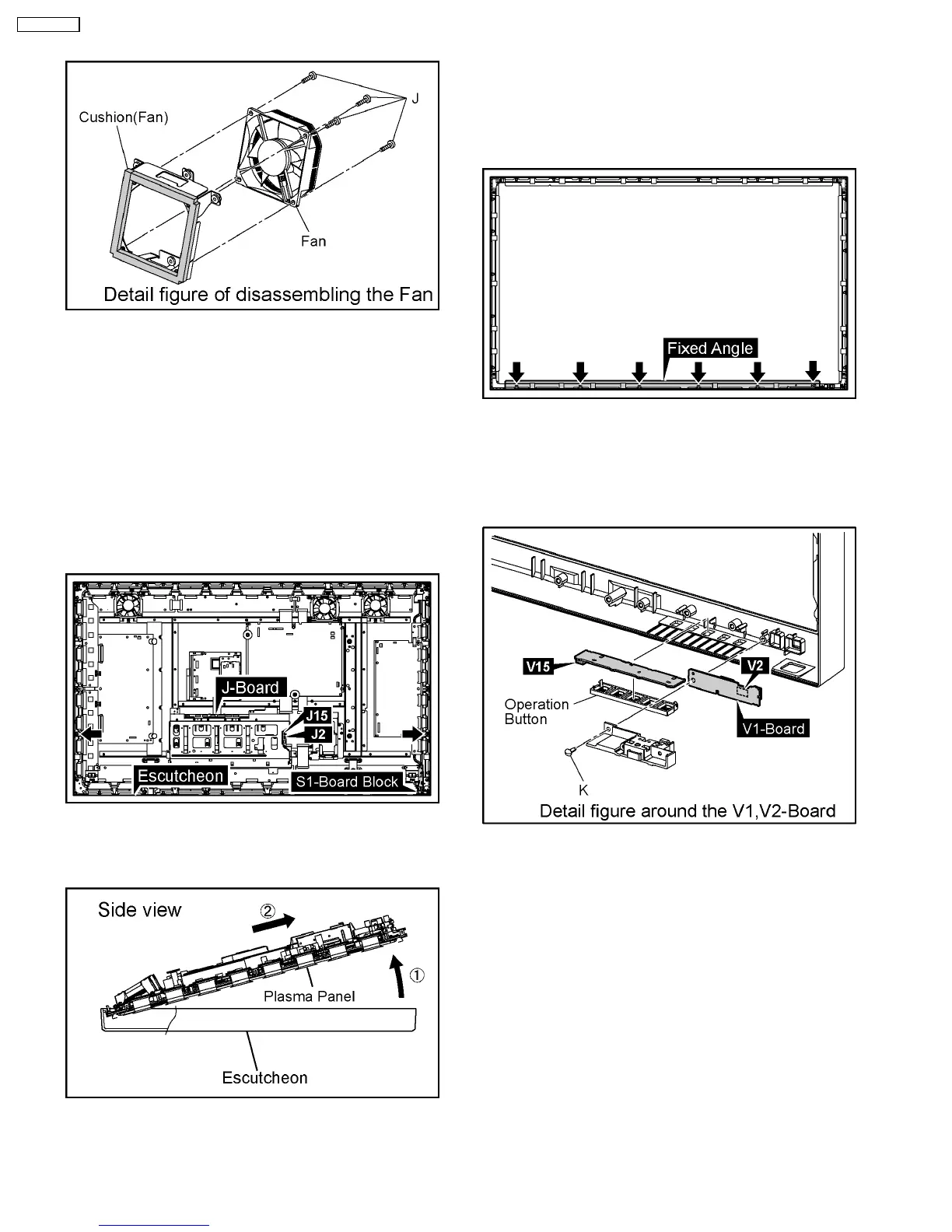 3. Remove 4 screws each (J) and then remove the Fans.