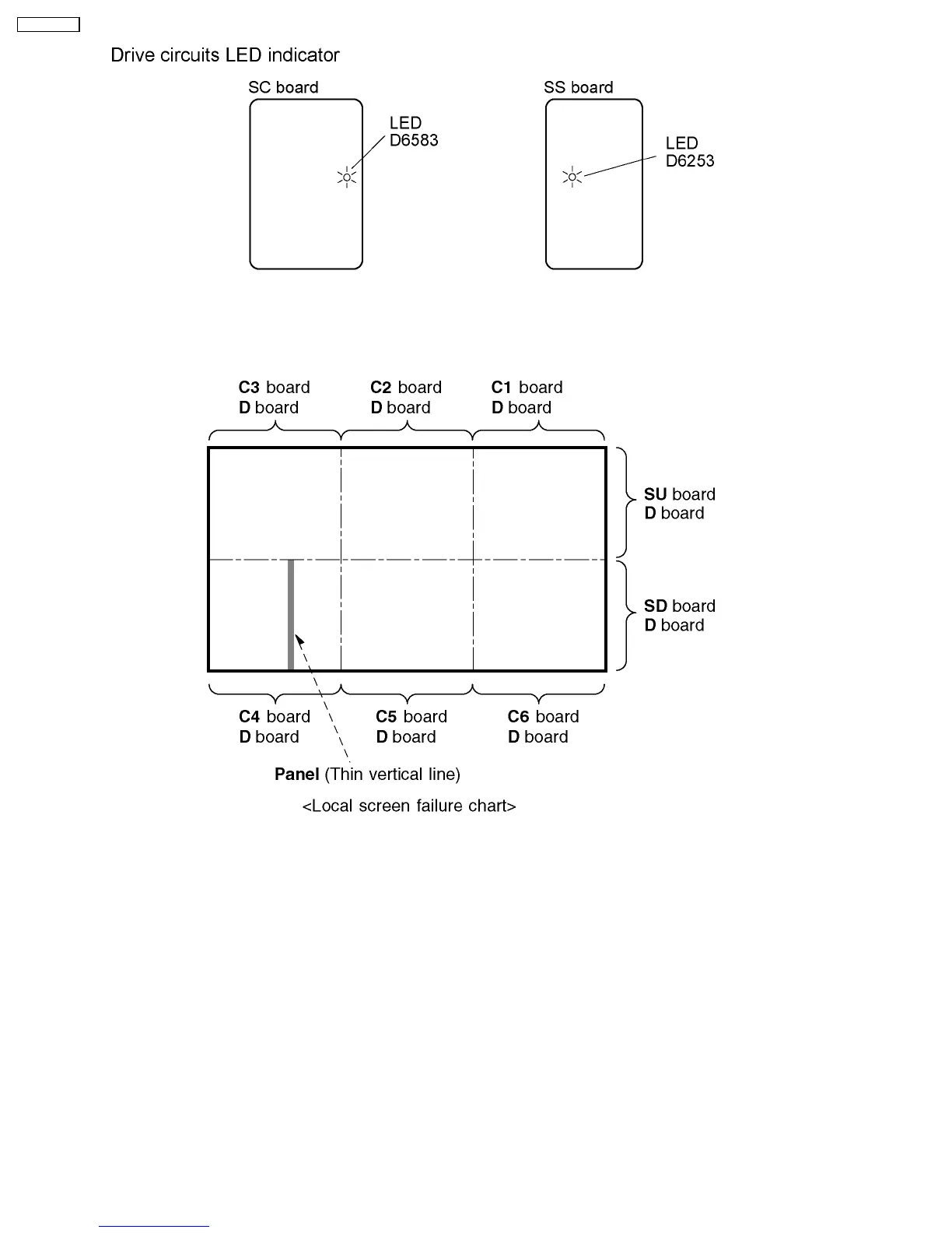 Plasma display may have local area failure on the screen. Fig - 1 is the possible defect P.C.B. for each local area.