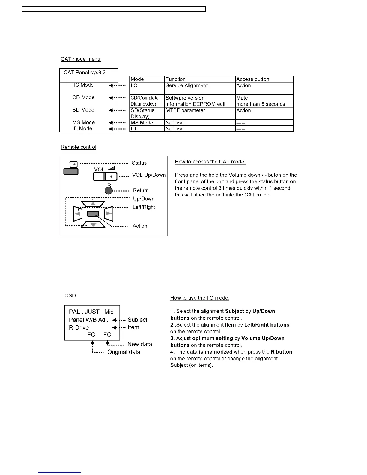 Select the IIC mode by Up/Down button on the remote control at the front page of CAT mode then press the Action button on