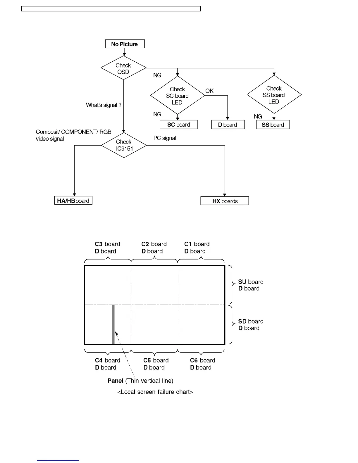 Plasma display may have local area failure on the screen. Fig - 1 is the possible defect P.C.B. for each local area.