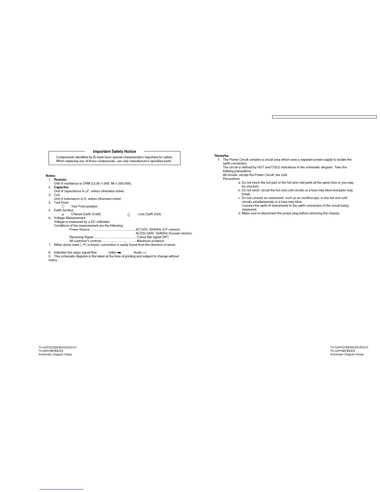 Panasonic TH-50PHW7BX - 15 Schematic Diagrams; Schematic Diagram Notes