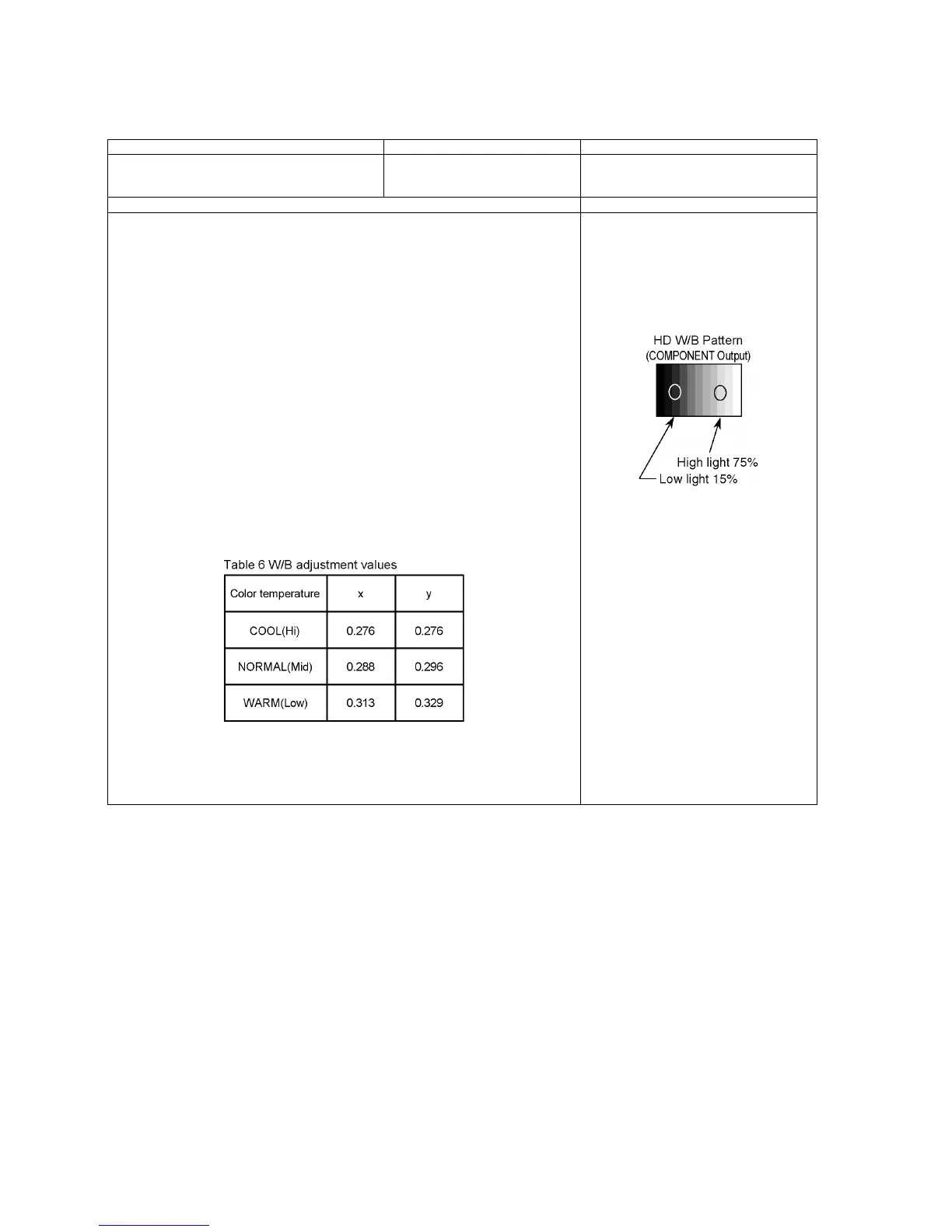 the “Color temperature WARM (Low)” shown in the below table.