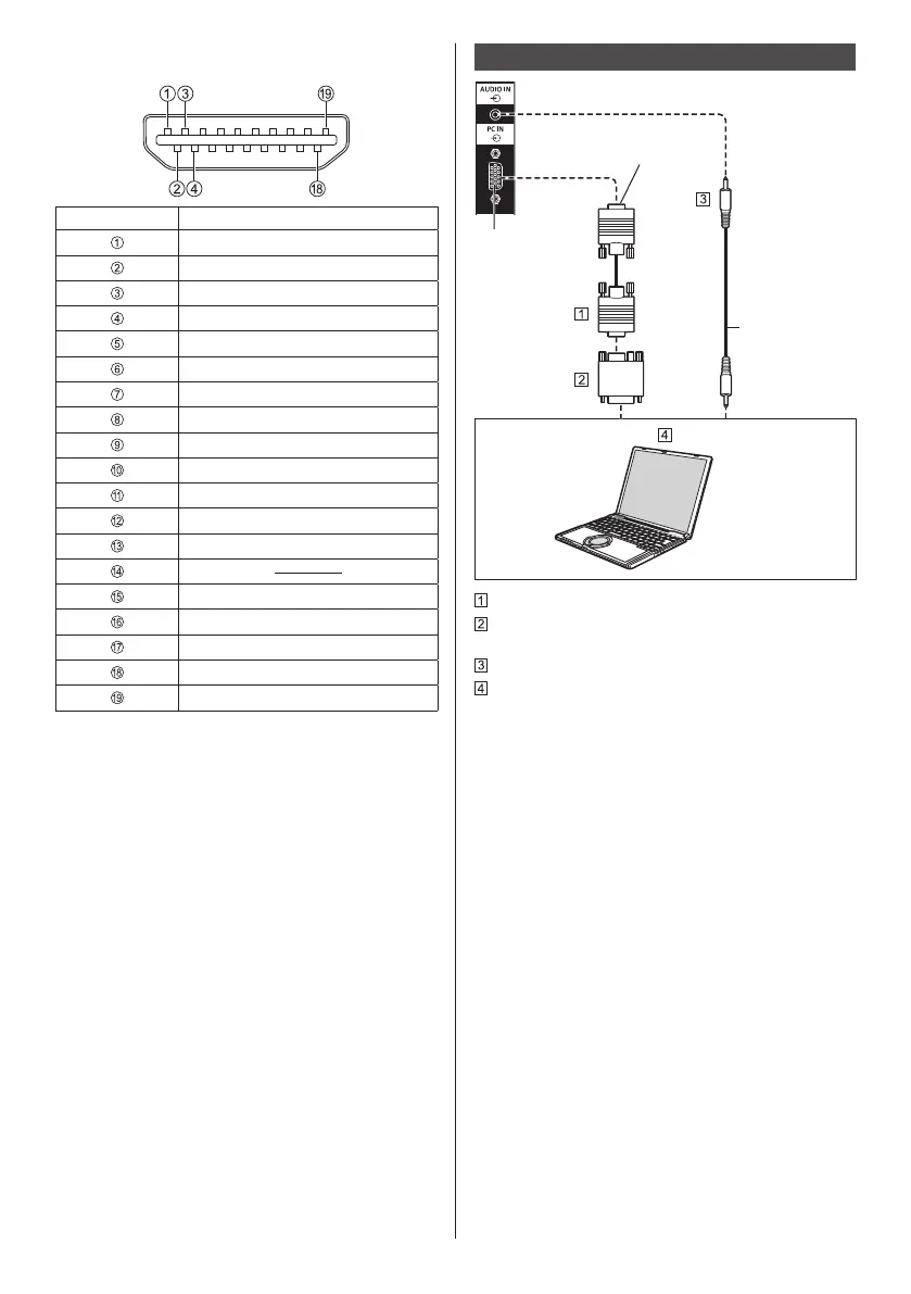 Pin assignments and signal names for HDMI