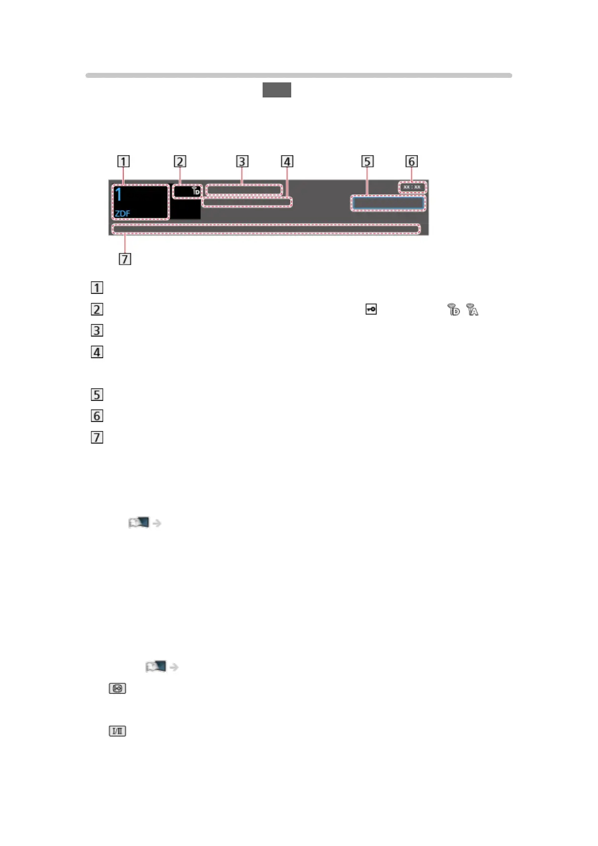 Channel type (Radio, etc.) / Encrypted channel ( ) / TV mode ( , )