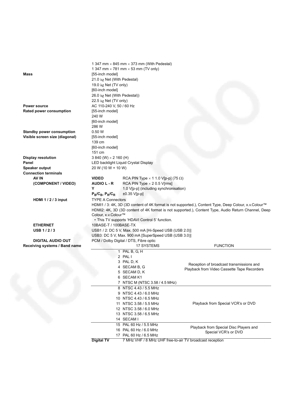Dimensions (W H D) [55-inch model]