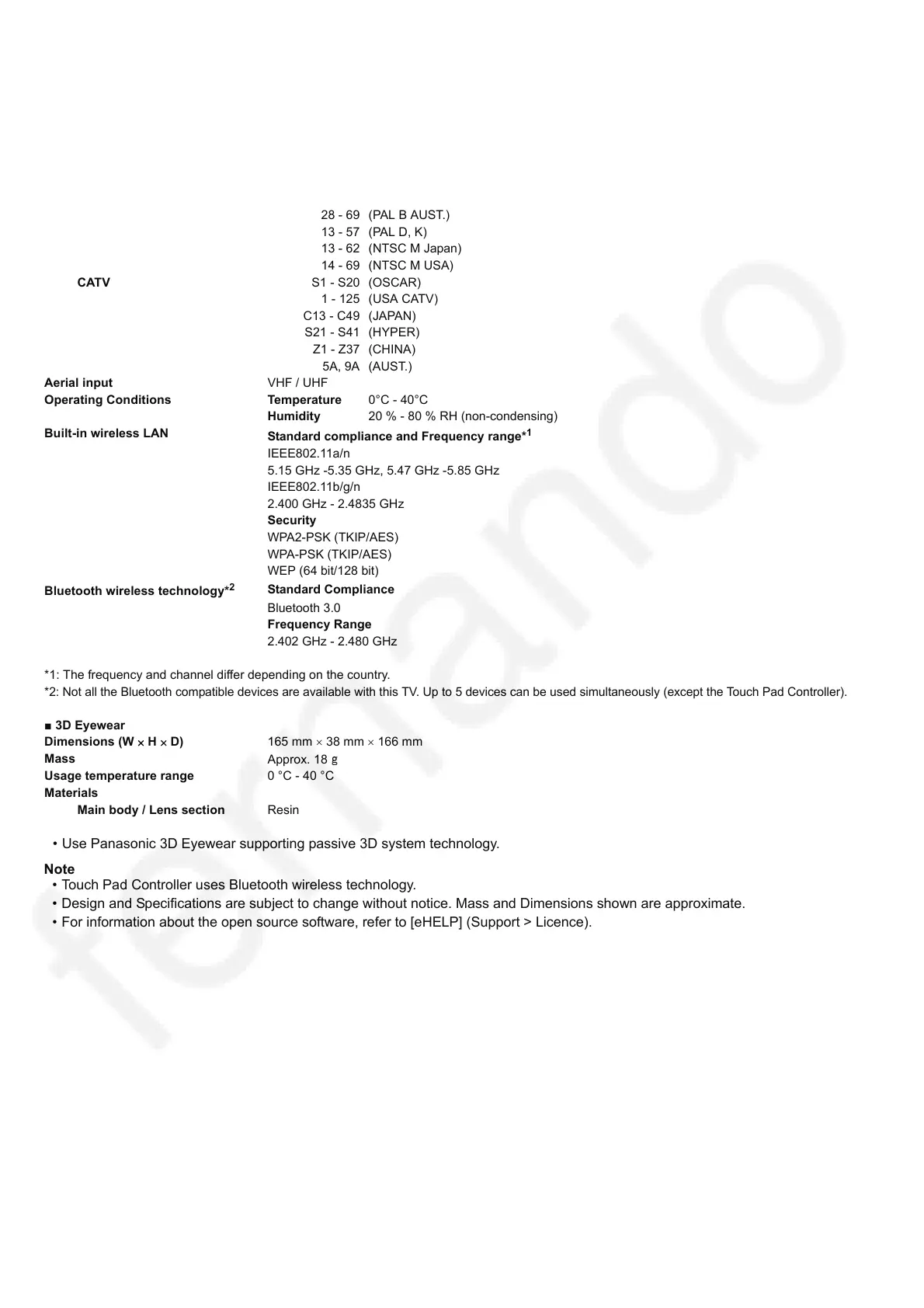 *2: Not all the Bluetooth compatible devices are available with this TV. Up to 5 devices can be used simultaneously (except the Touch Pad Controller).